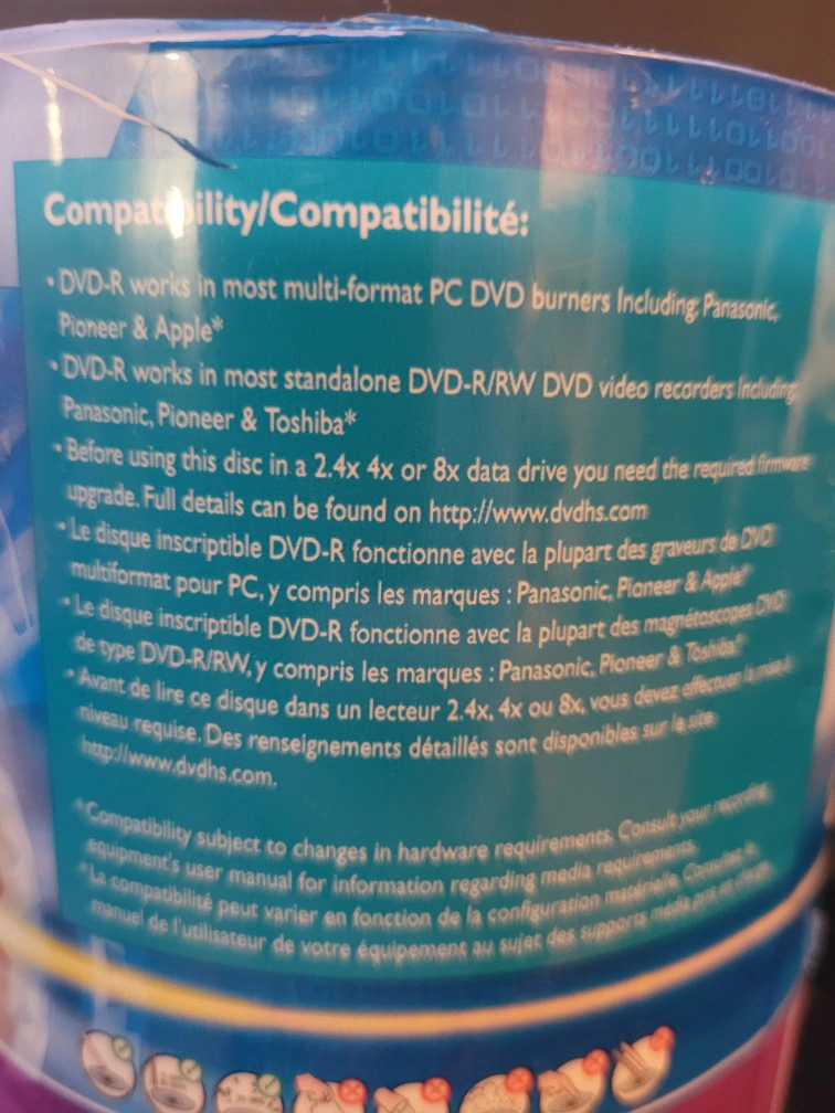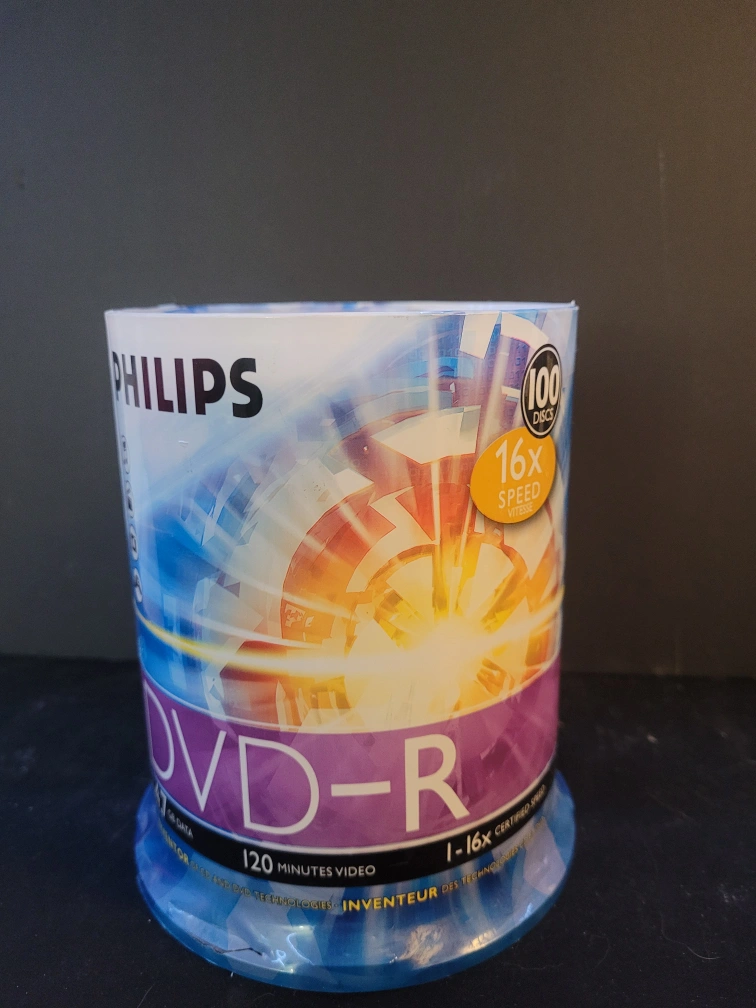 Unused Philips DVD-R disc. 16x speed, 120 minutes of video recording time. 4.7 GB data capacity. Compatible with most multi-format PC DVD burners and standalone DVD-R/RW video recorders. Check compatibility with your device. unopened. old but unopened. don't need.