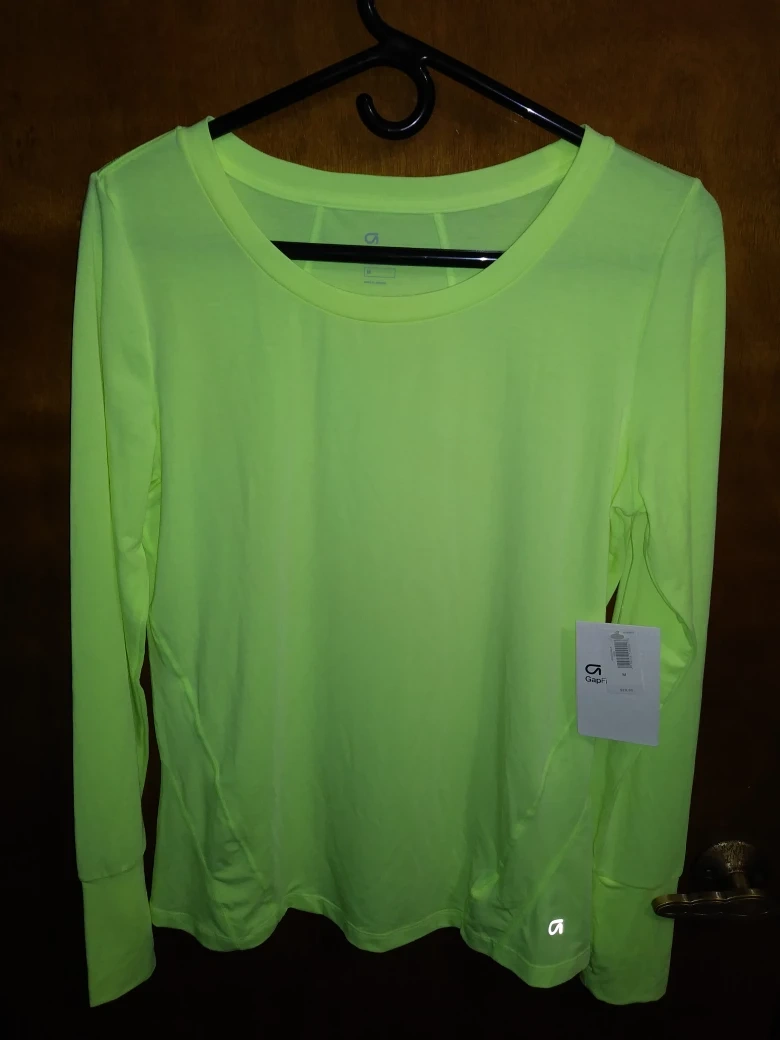 Bright neon yellow green long-sleeve athletic shirt. Size medium. GapFit brand. new with tags.