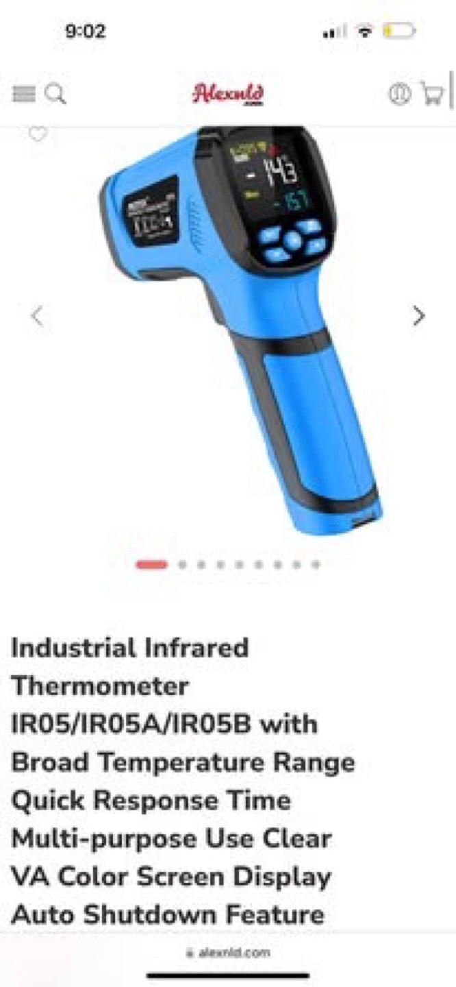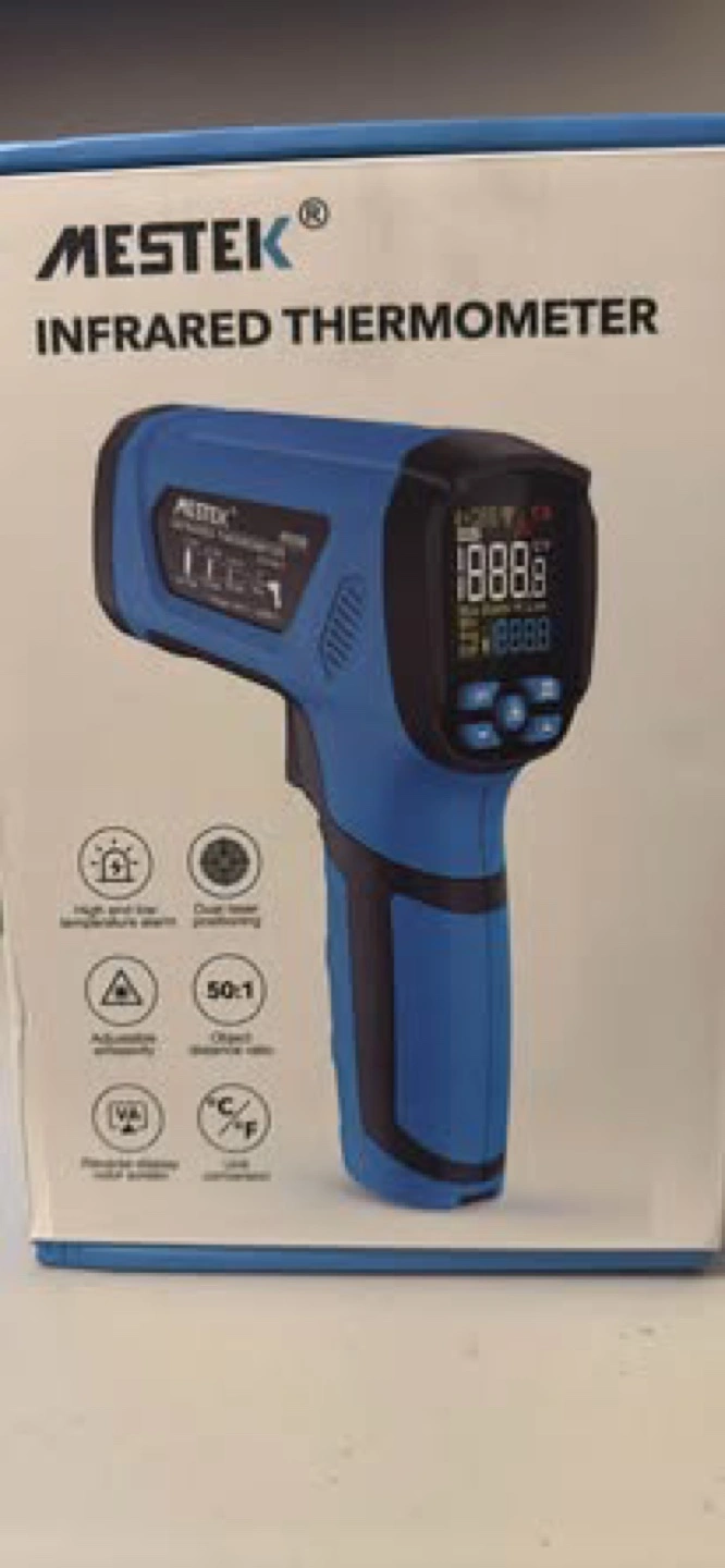 Industrial infrared thermometer. Broad temperature range. Quick response time. Multi-purpose use. Clear VA color screen display. Auto shutdown feature. Smoke free pet free Pick up only. Closed to Fairview mall in Kitchener Only serious inquiries Cash only No low ballers