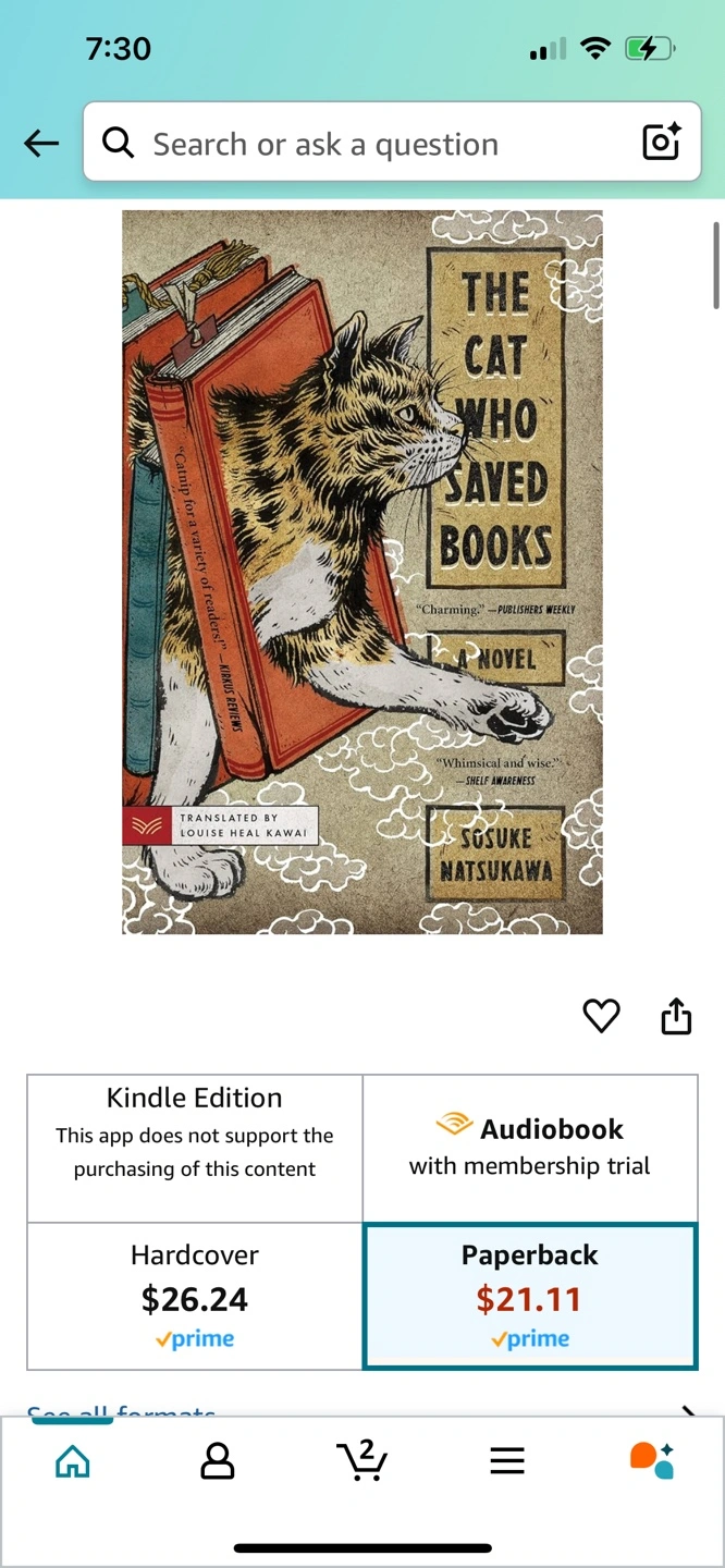 Brand New The Cat Who Saved Books Paperback Novel Paperback novel. A heartfelt story about a teenager and a bookshop who meets a cat and goes on missions to save books. It dives deep into the intrinsic value of books. A feel good story similar to The Little Prince. Retails for $21.11 + tax on Amazon and more at Indigo. Clean, smoke free home Pick up in North Ajax