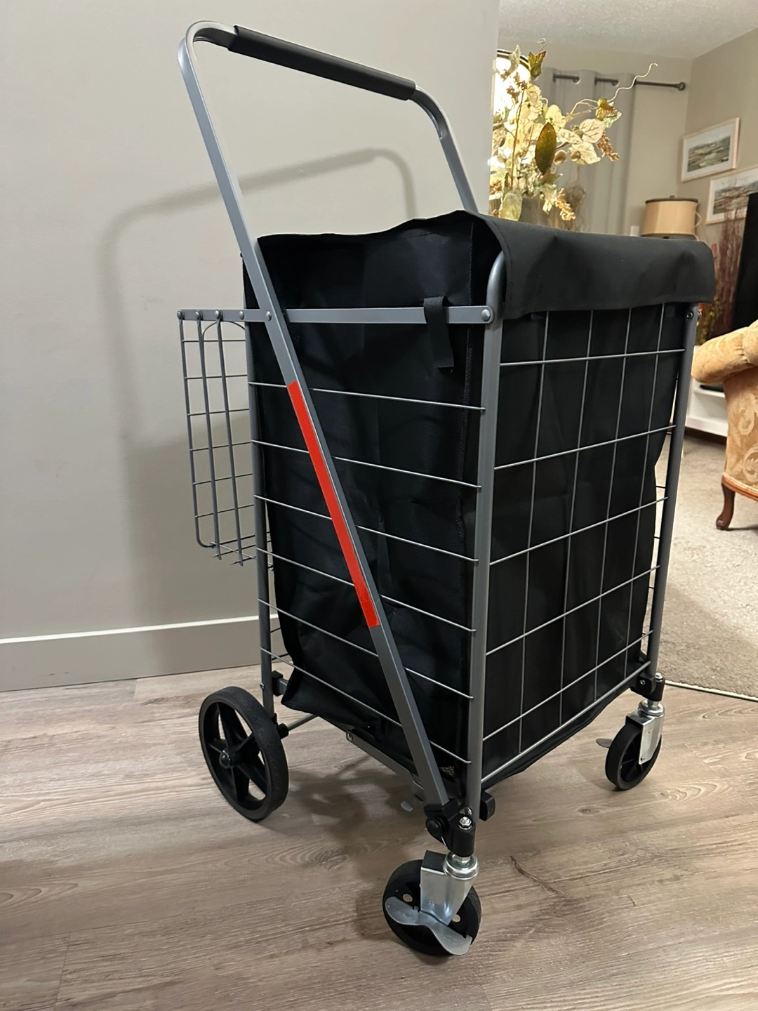 Brand-New Foldable Shopping Cart with Waterproof Bag – Heavy-Duty, 300lbs Capacity Selling a new, foldable shopping cart designed for convenience and durability. This cart features 360° swivel wheels for smooth maneuverability, a waterproof bag to keep your items dry, and a double-basket design for added storage and organization. Originally purchased for $185, but now available for pickup in Red Deer. Serious inquiries only.