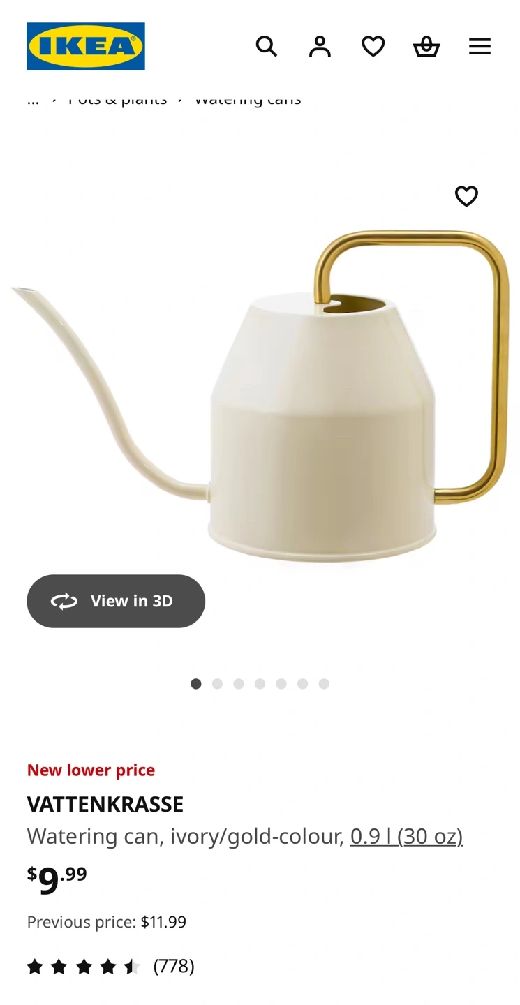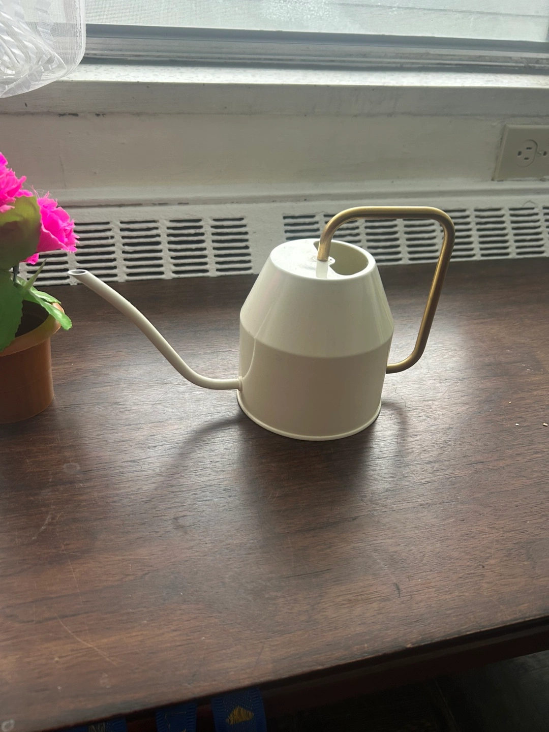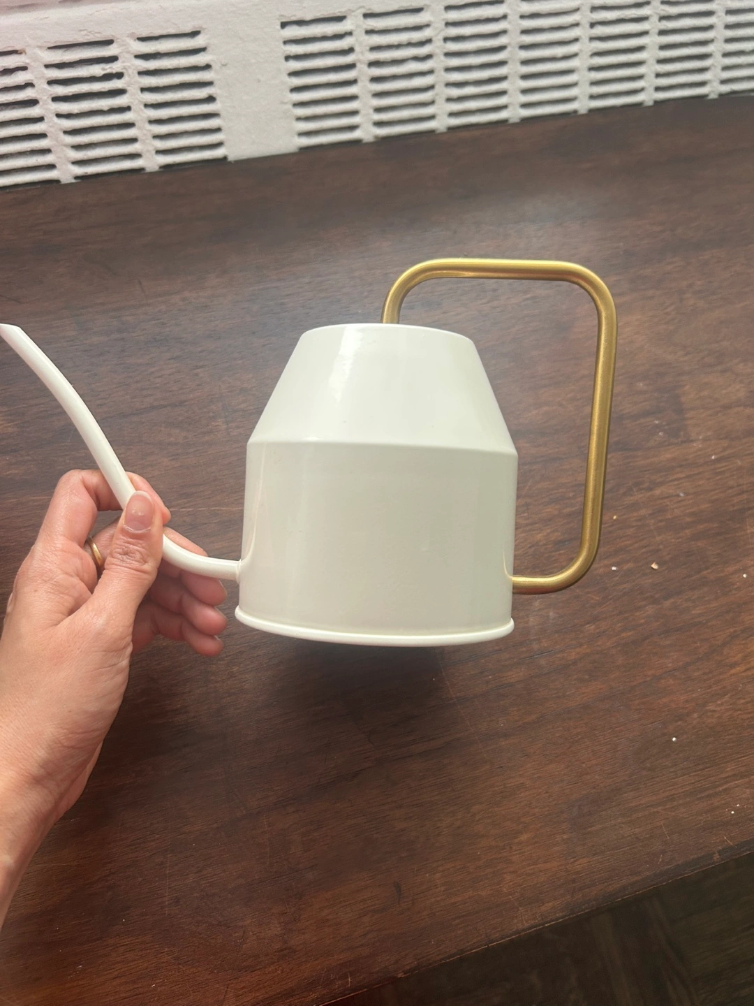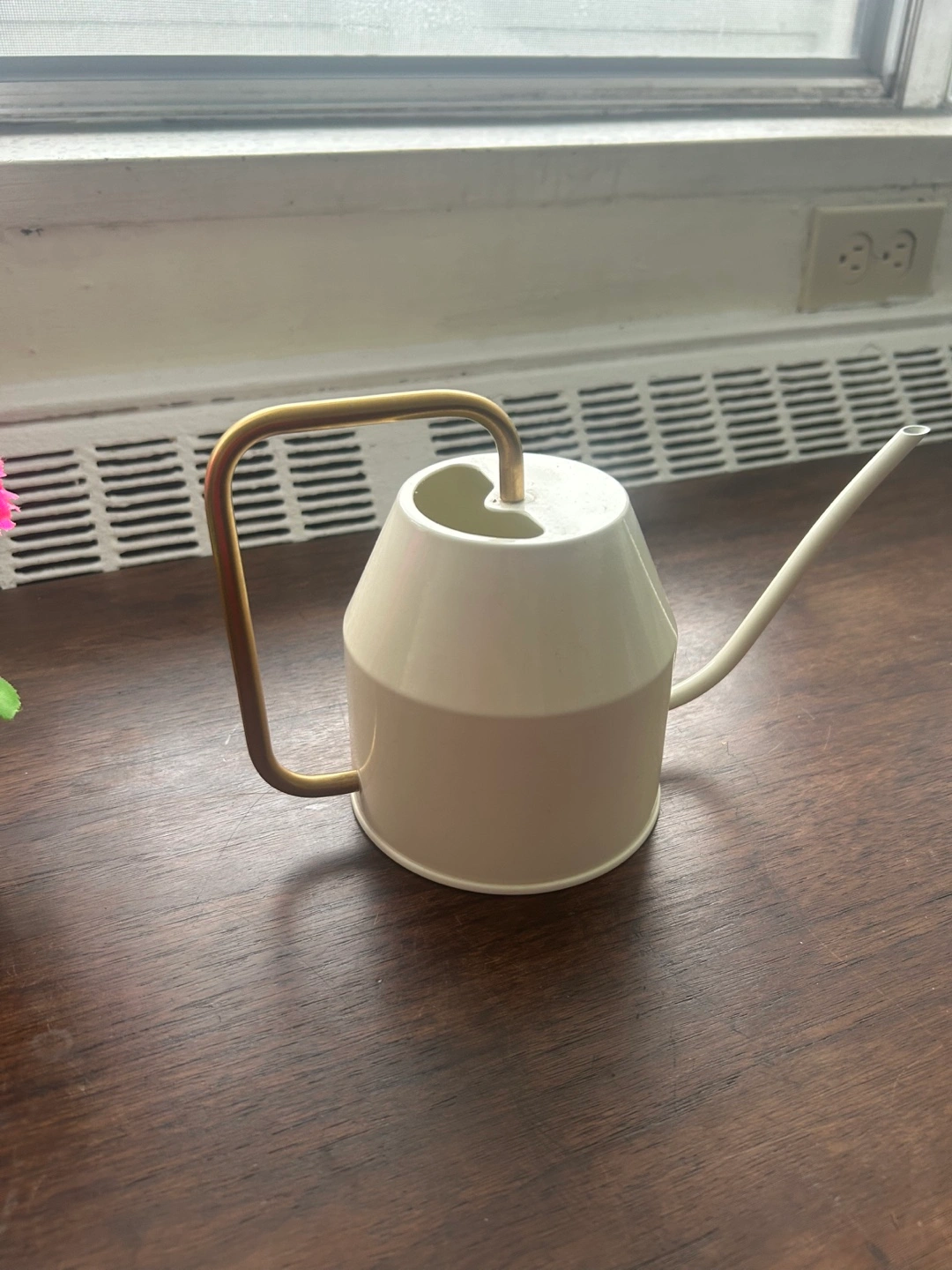 Small off-white watering can. Brass coloured handle. Long spout. Perfect for indoor plants. We are moving to our home country that’s why I am selling it. If you like to buy this please contact me before march 28 . Pet free and smoke free home . Pickup and cash only .