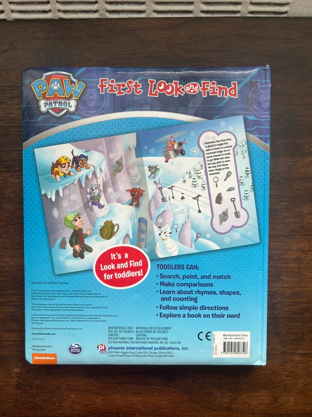 Paw Patrol themed children's book. Interactive look and find activity book. Features Ryder and the pups. Great for toddlers. Fun for learning. We are moving soon if you like it please contact me before march 28. Pet free and smoke free home . Pickup only.