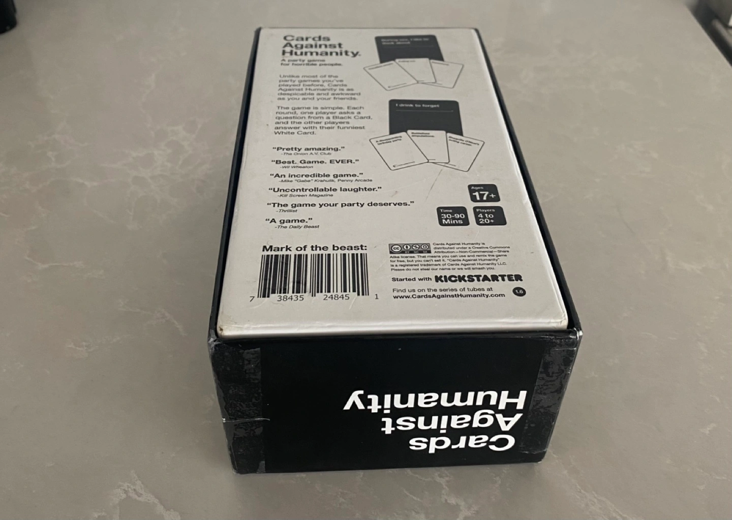 Party game for horrible people. Includes many cards. Great for adults. Uncensored humour. Pick up in Liberty Village