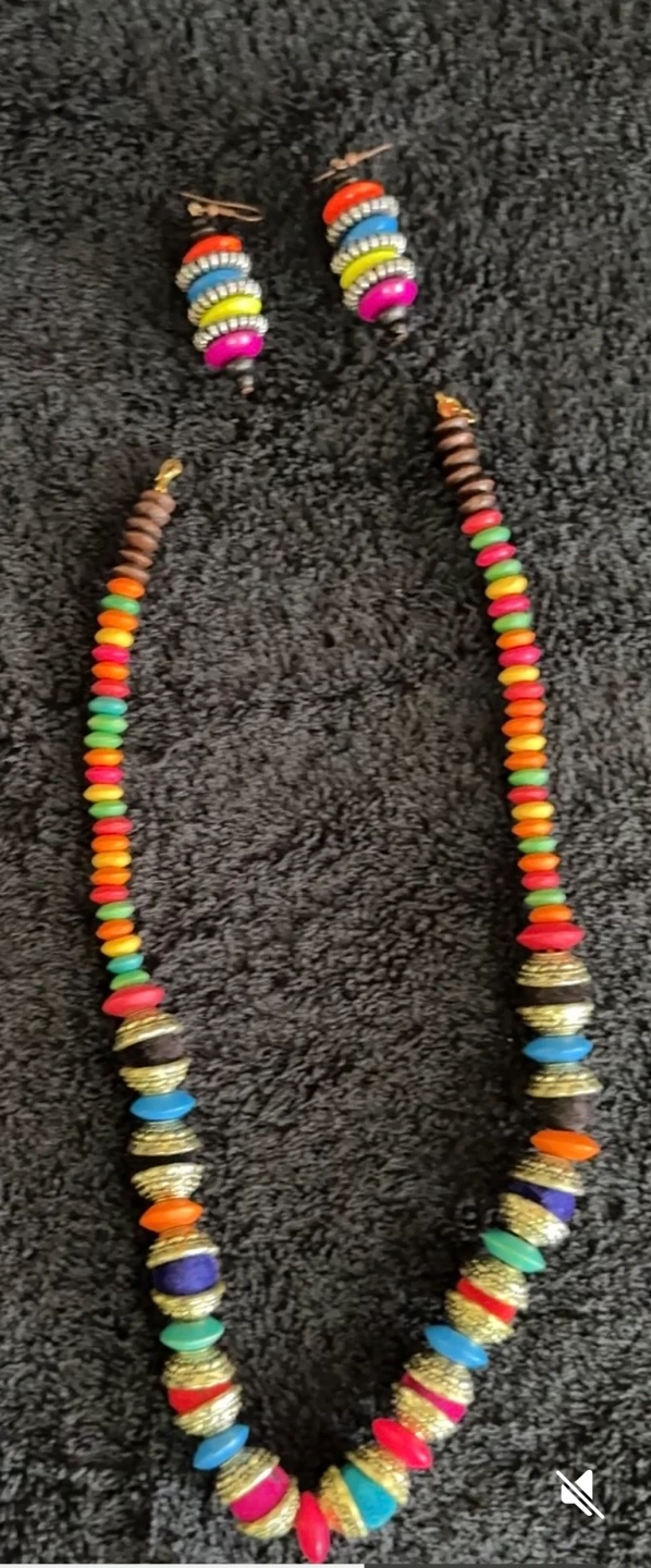 Boho-chic necklace and bracelet set. Multicoloured beads, metallic accents. Perfect for summer. Lightweight and comfortable.Pickup near dixie and bloor Mississauga