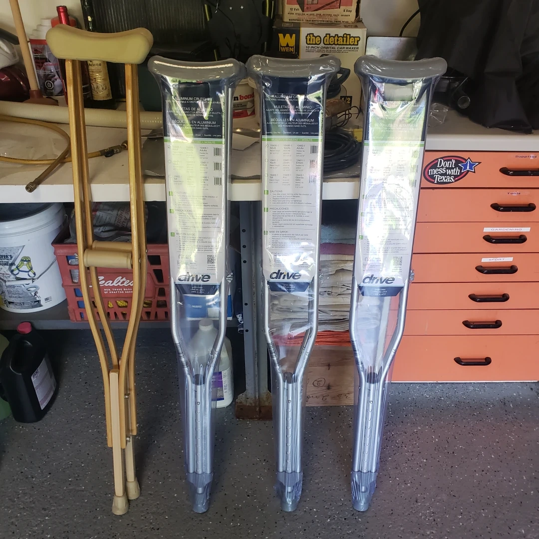 Various crutches available. 5 foot 2 inches to 5 foot 10 inches wood and aluminum $35 each pair