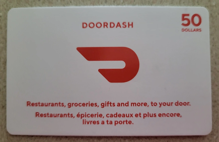 $50 value - Door Dash gift card Scratch off the back to reveal the voucher ID number ** $45 CASH ONLY, PRICE IS FIRM ** -- Pick up Downtown West End Vancouver --