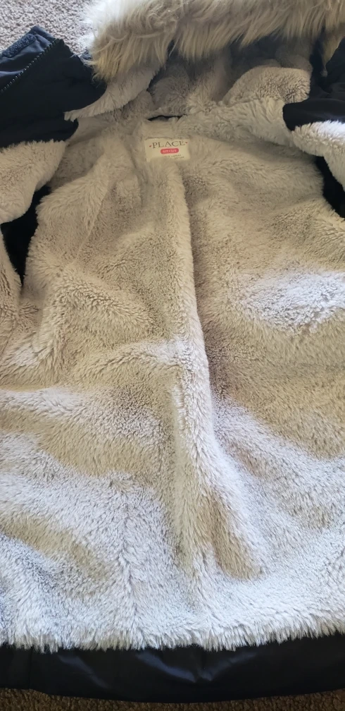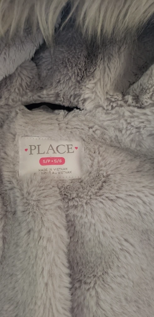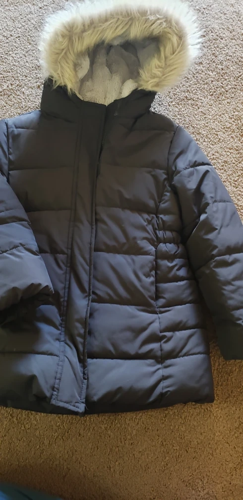 Girls' black puffer jacket. Size 5/6. Faux fur trimmed hood. Warm, cozy lining. Great for winter.