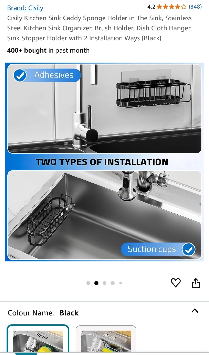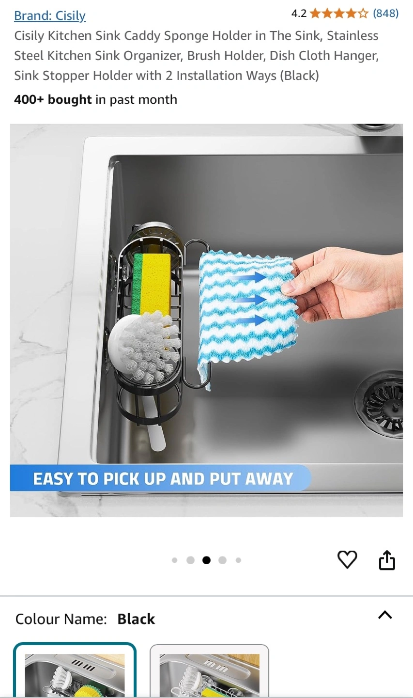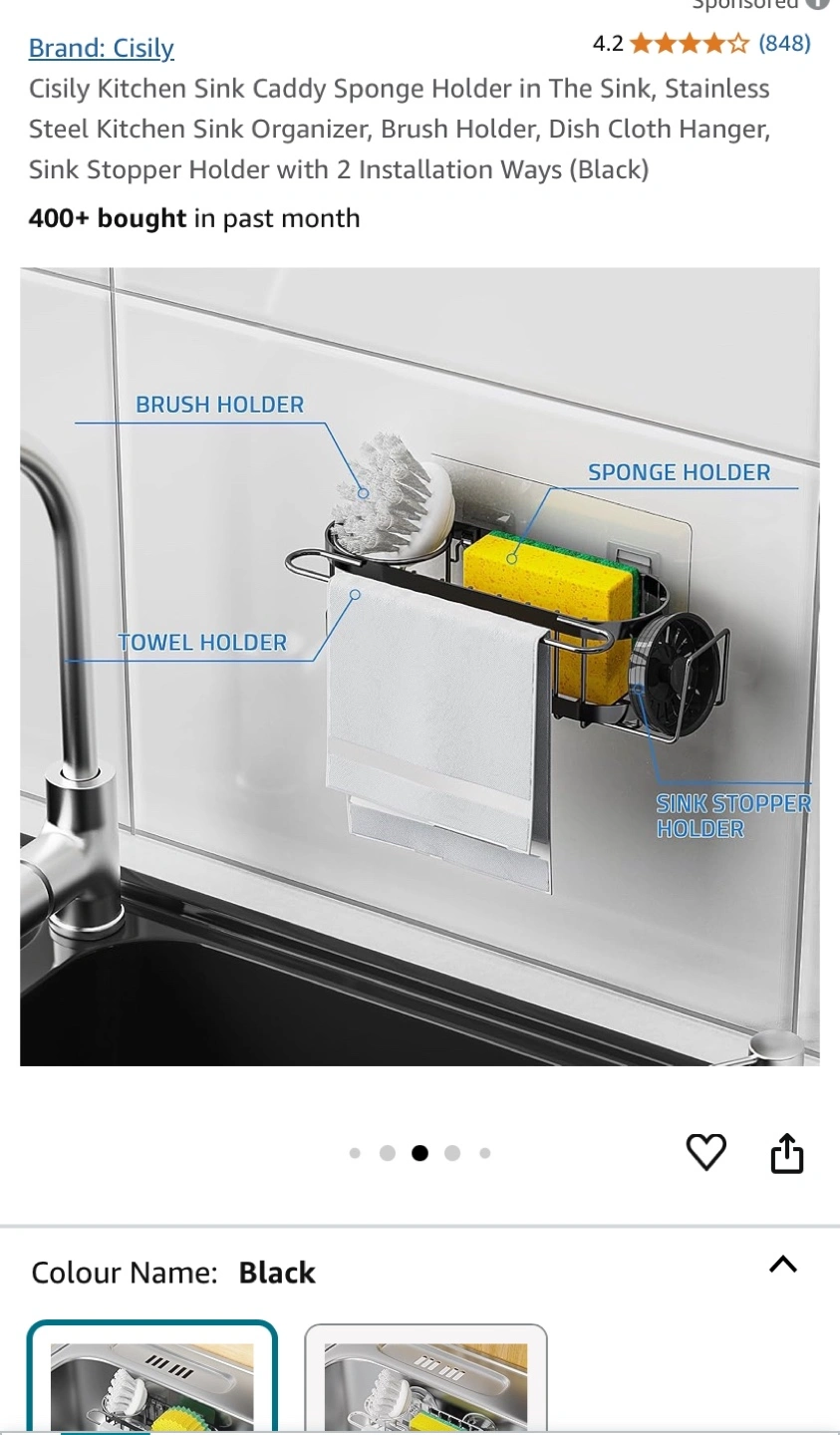 Stainless steel sink caddy. Sponge holder, brush holder, dish cloth hanger, and sink stopper holder. Two installation methods. Fits most sink sizes. BRAND NEW IN BOX Pick up Richmond Hill
