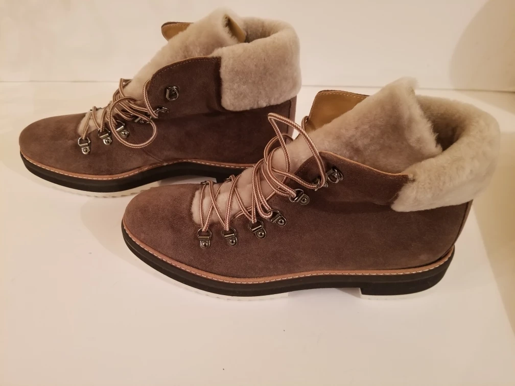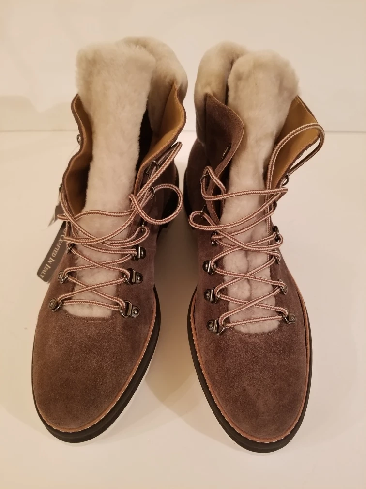 Men's Hand Crafted Italian Napoleoni Brown suede ankle boots. Lace-up closure. Features a faux fur lining. Thick rubber sole. BRAND NEW! Selling for $130-$230 before tax