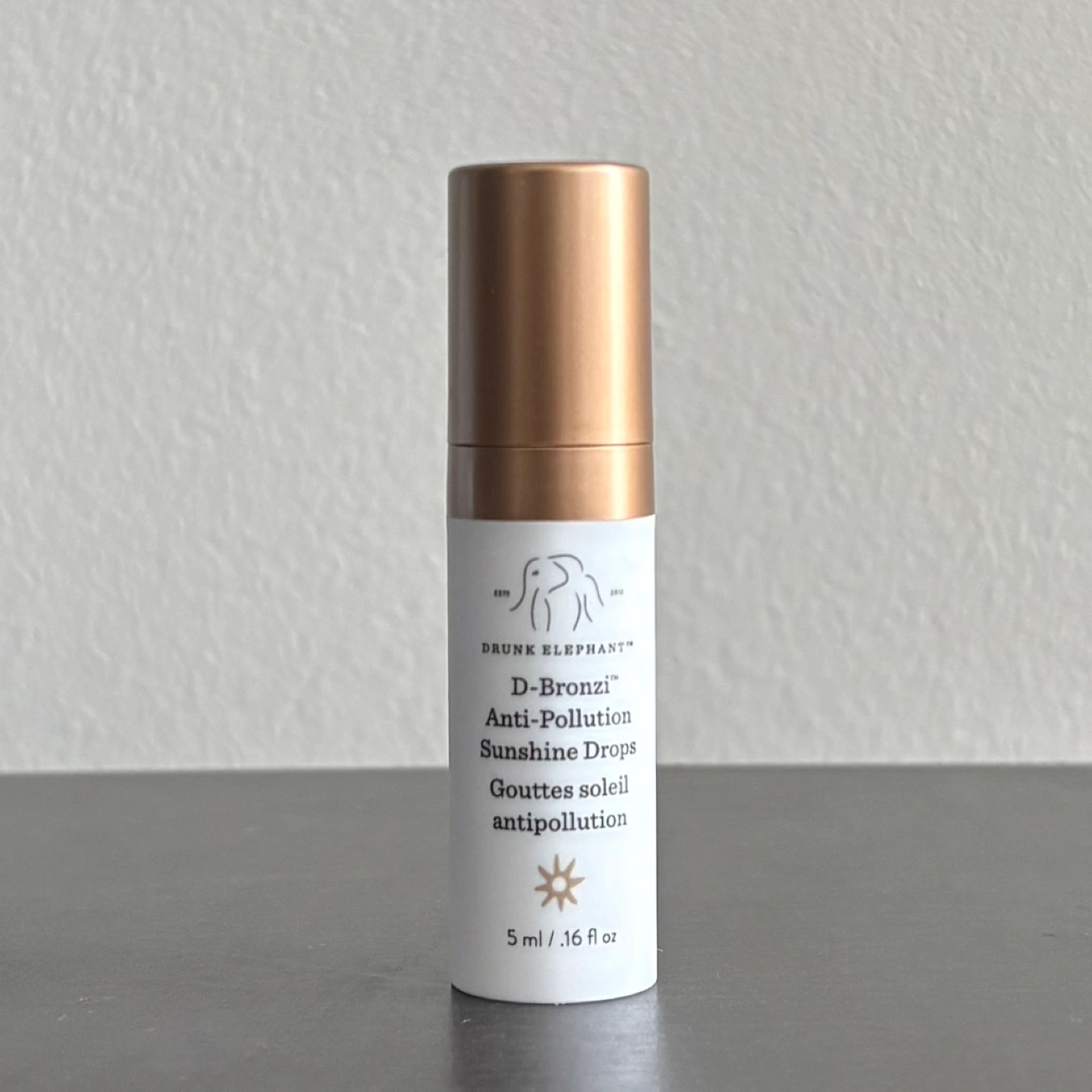 Brand new 5ml mini size. Anti-pollution tinted serum drops. This antioxidant-rich, peptide-infused serum delivers a bronzy wash of color while boosting skin’s elasticity and supporting healthy barrier function. With a chronopeptide that mimics vitamin D’s antioxidant benefits, D-Bronzi flatters every complexion—without the sun damage. D-Bronzi is designed to be mixed with any Drunk Elephant moisturizer or serum to add the prettiest hint of color.