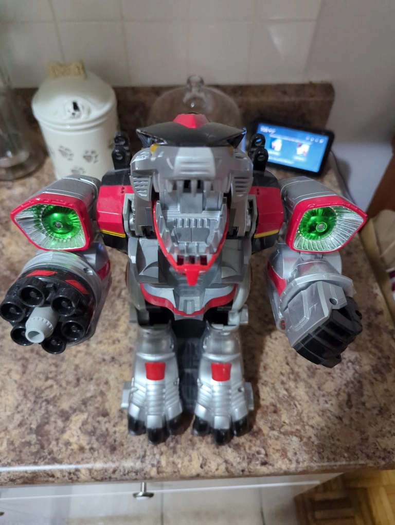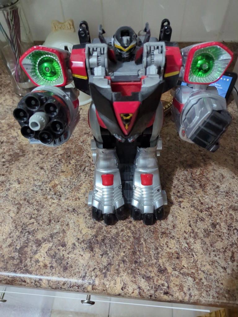 Large collectible Power Rangers Dino Charge Megazord. Mostly red and silver plastic. Features light-up green eyes and missile launchers. Articulated joints.Looking to trade for comic books. Smoke free home Pick up in Oakville. Please check out my other listings.