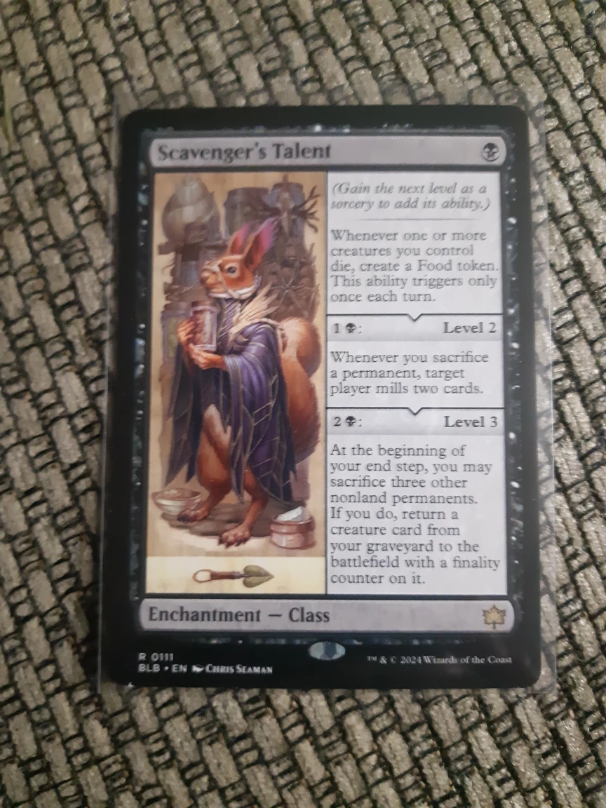 Magic: The Gathering card. Scavenger's Talent. Black border. Enchantment - Class. Excellent condition. From the Battlebond set. Asking $5. Smoke free home. Cash or etransfer. Pick up in Oakville. Please check out my other listings.