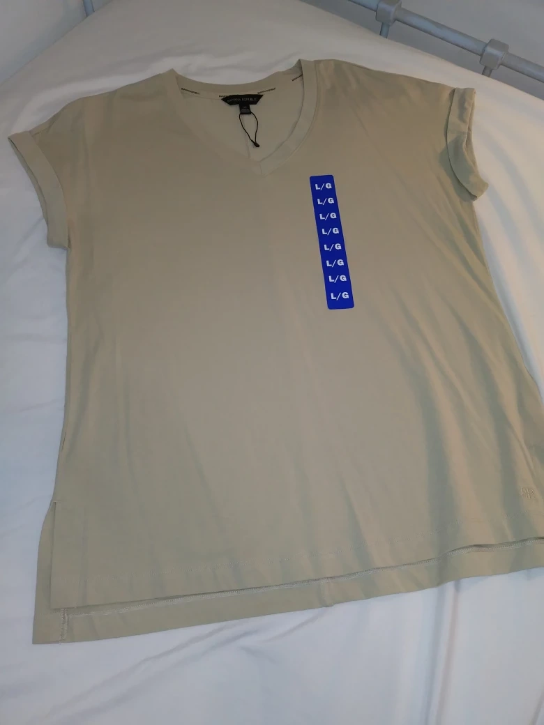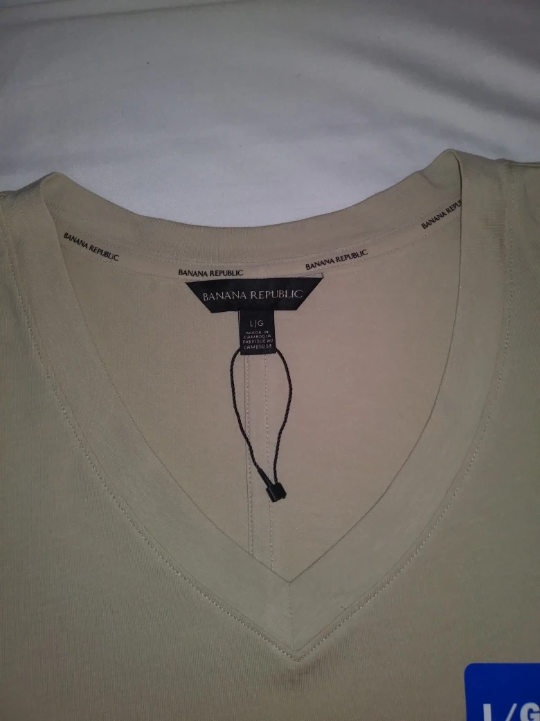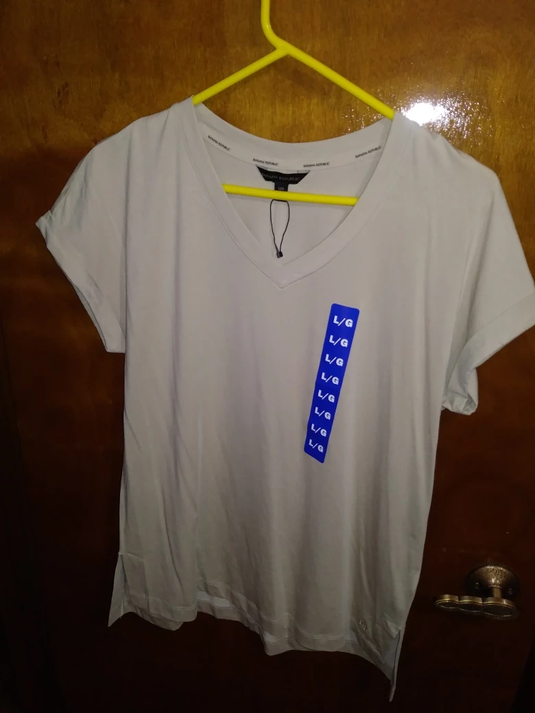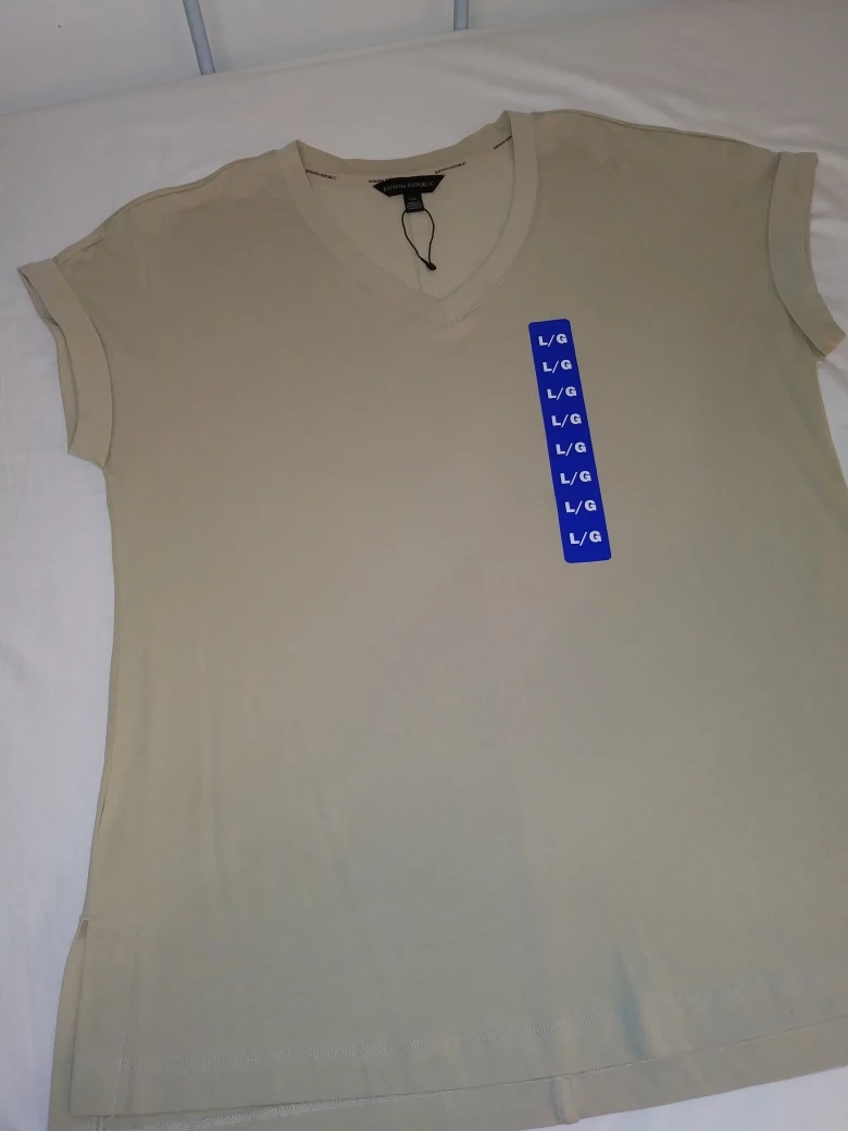 Brand new Banana Republic women's V-neck, short sleeve t-shirt. Light beige colour. Size large/grande. Slightly longer length in the back.