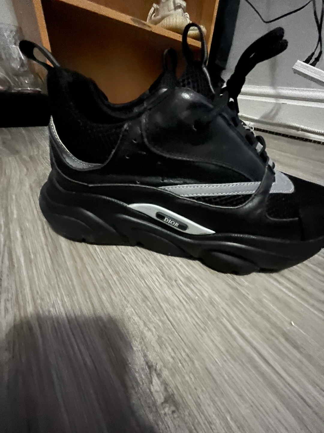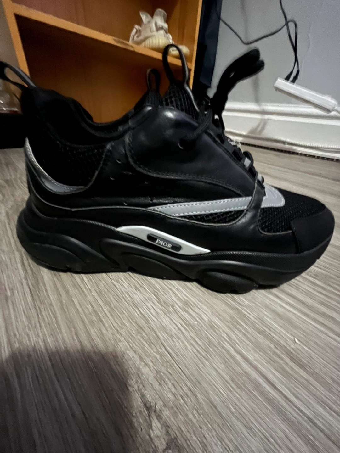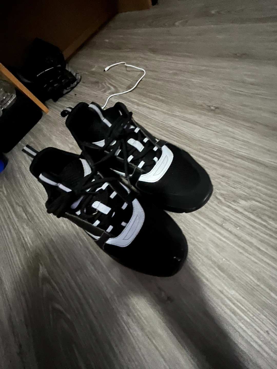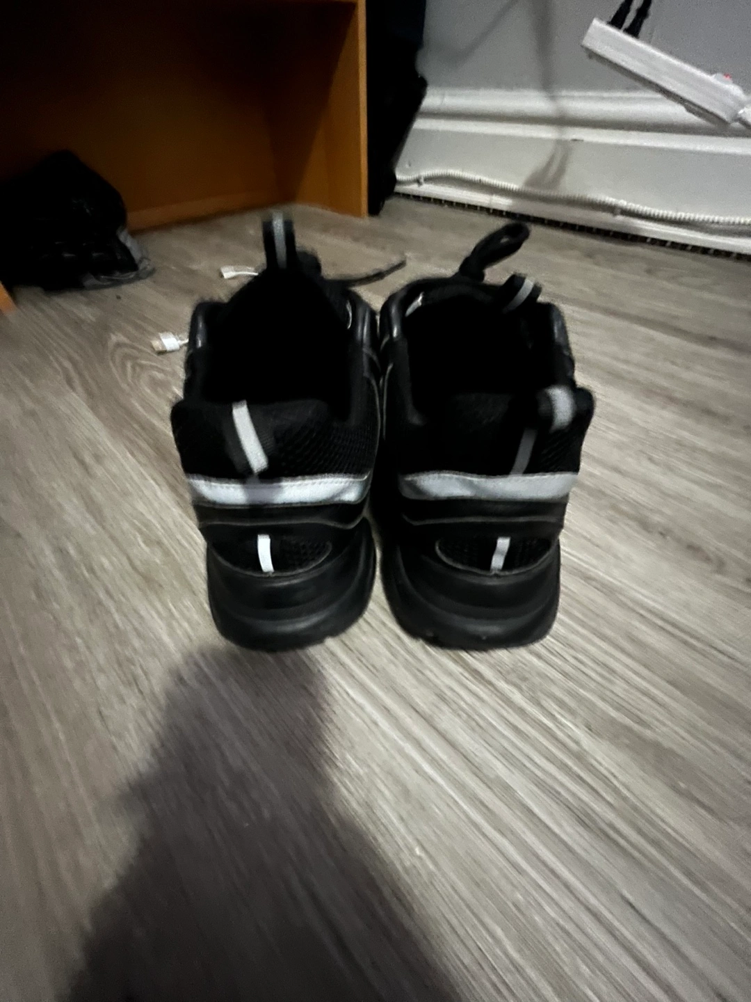 Black and grey sneakers. Low-top design. Lace-up closure. Chunky sole. Excellent condition.