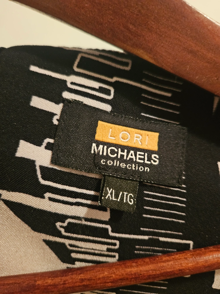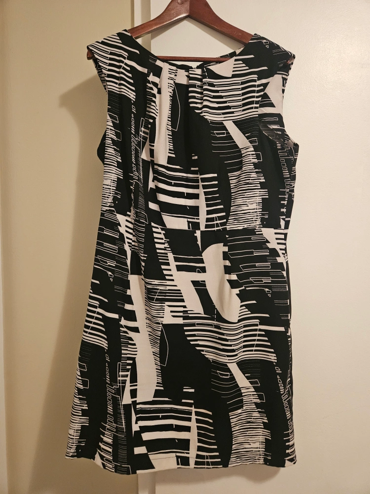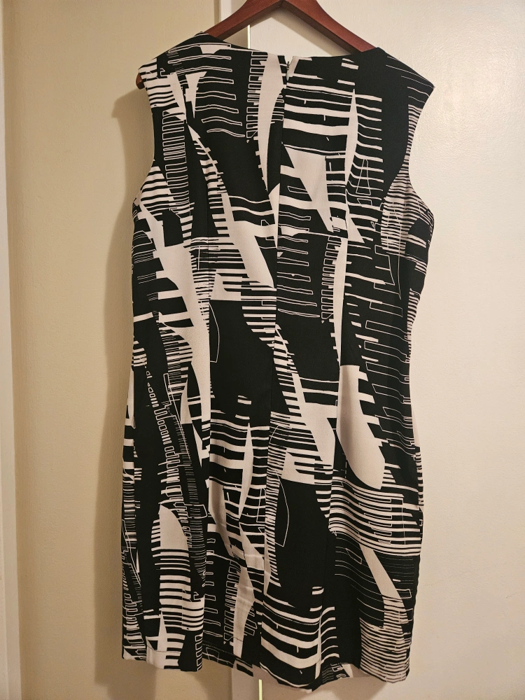 Stylish sleeveless dress. Black and white abstract print. Size XL. Back zipper closure.