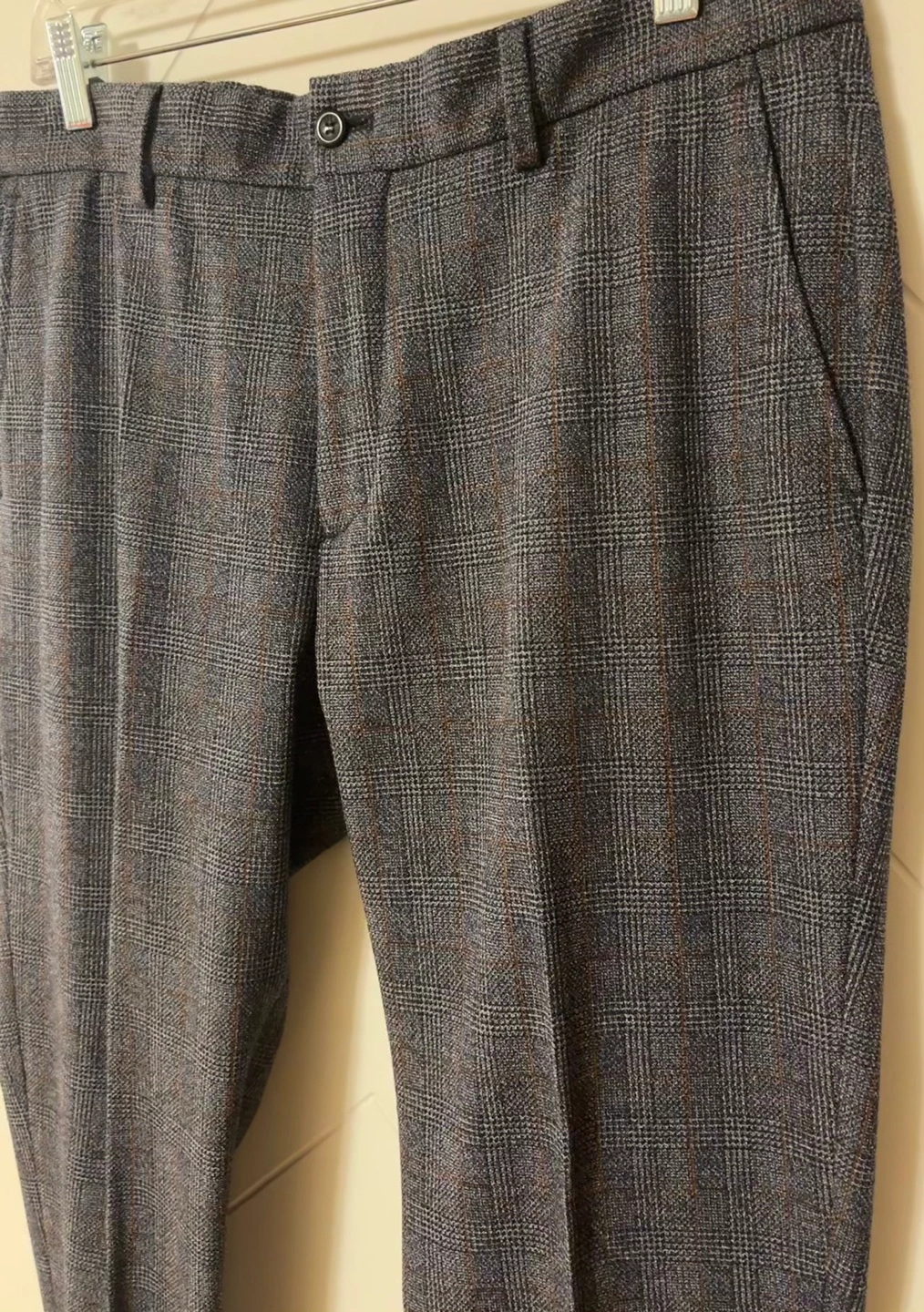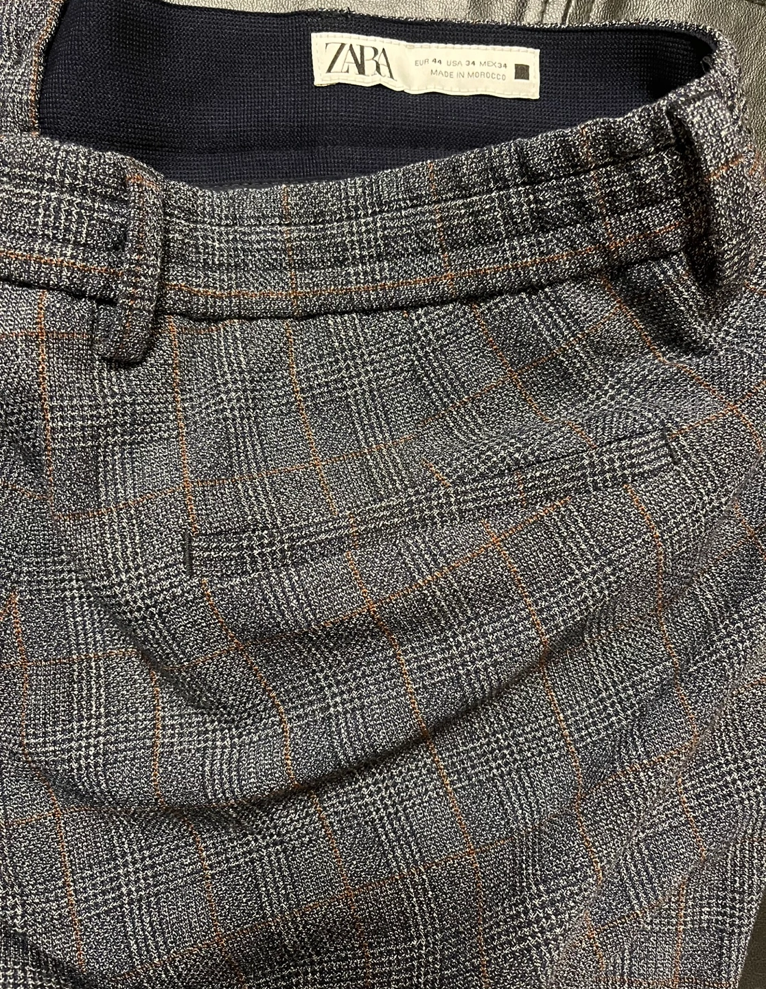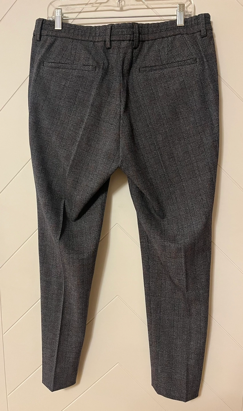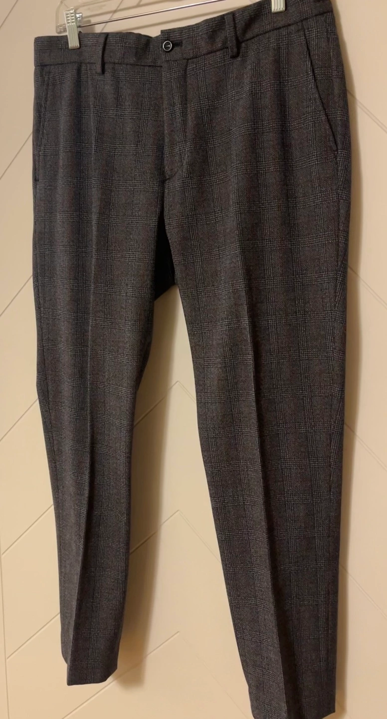 Men's dress pants. Grey plaid pattern. 4-way stretch fabric. Slim fit Size 34 Made in Morocco Pick up Bloor and Islington Etobicoke