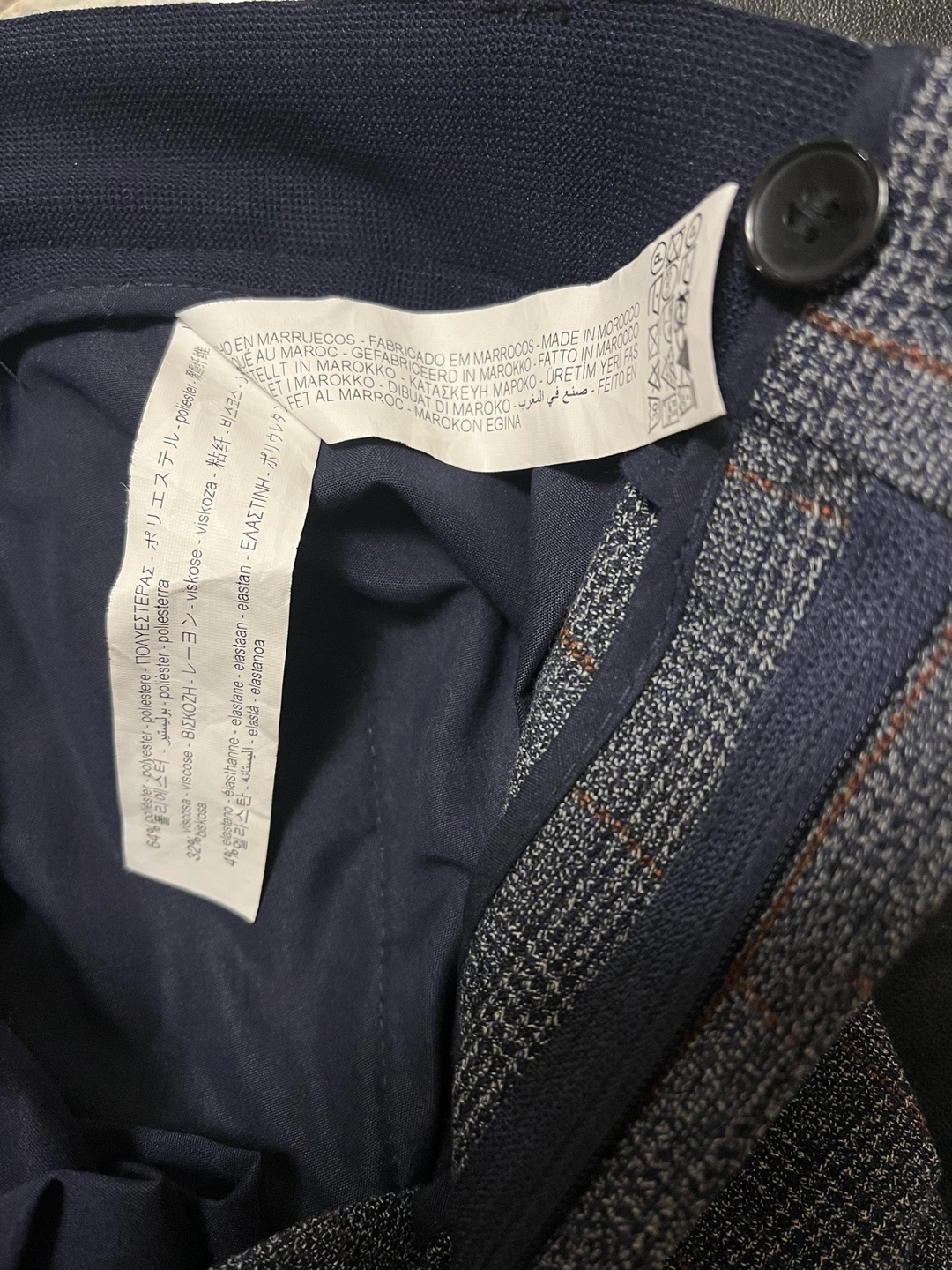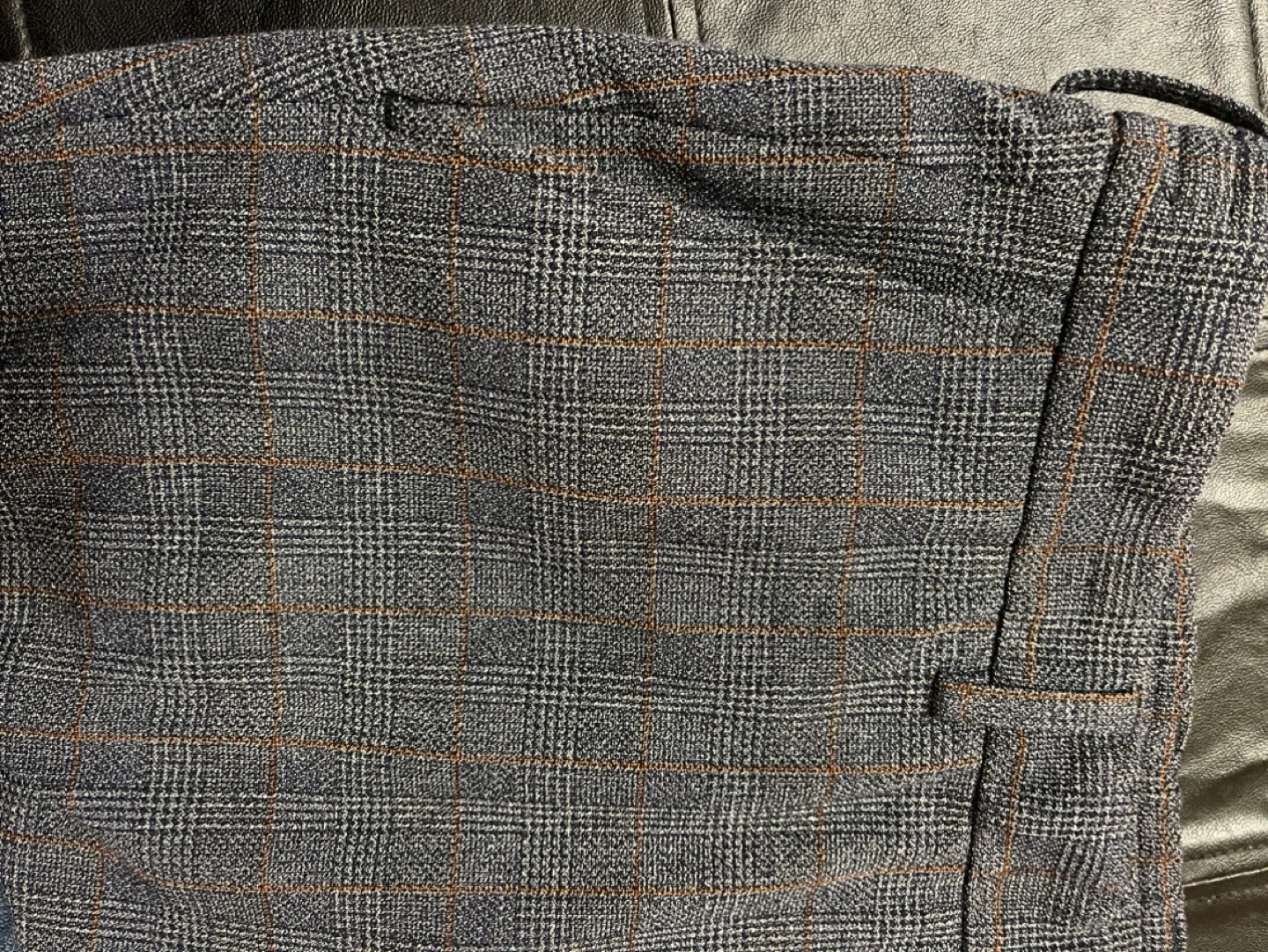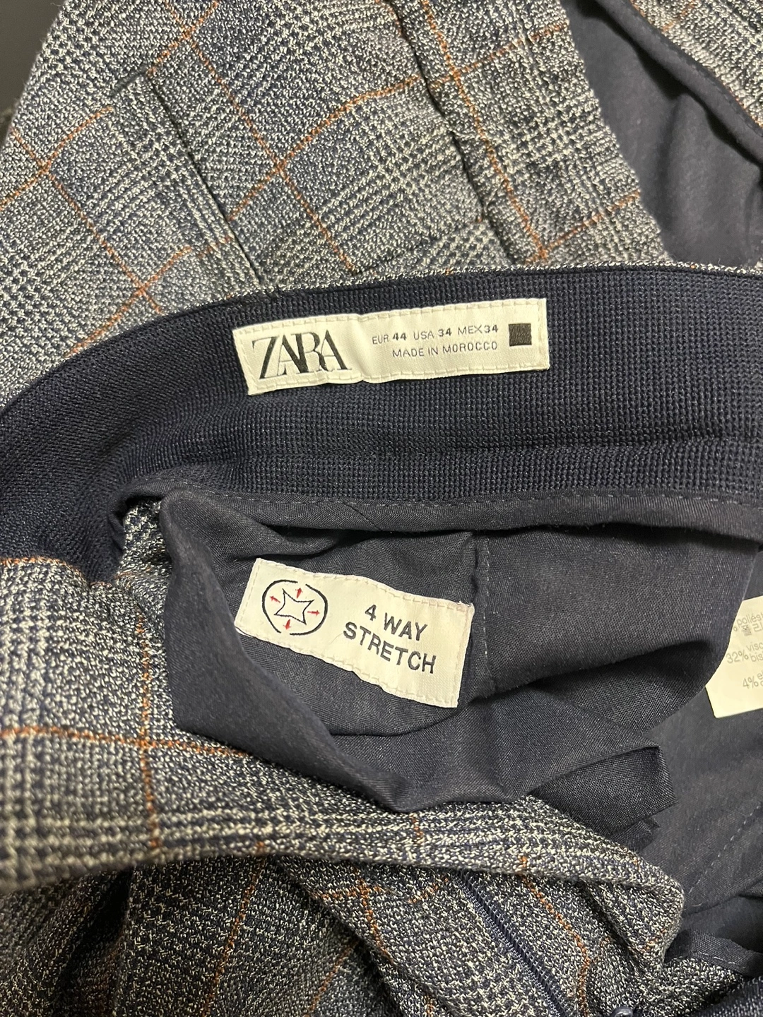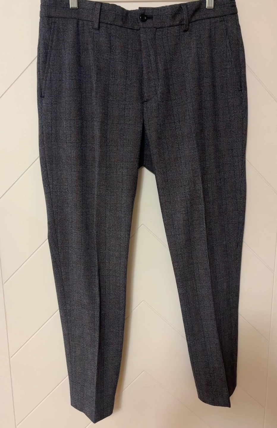 Men's dress pants. Grey plaid pattern. 4-way stretch fabric. Slim fit Size 34 Made in Morocco Pick up Bloor and Islington Etobicoke