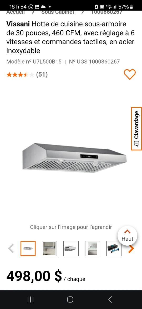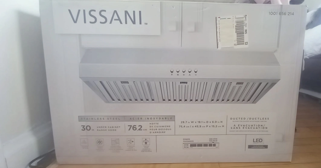 Stainless steel under cabinet range hood. 460 CFM. Six speeds. Touch controls. Ductless/ducted. 30 inches wide.