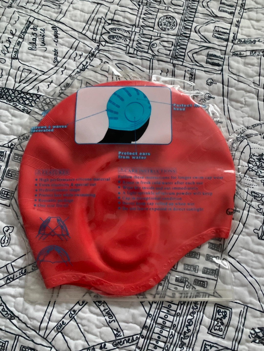 Silicone swim cap. Perfect fit. Protects ears from water. New in package.