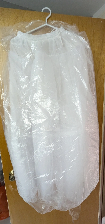 Long white tulle petticoat. Was for wedding dress. Drawstring waistband. Great for adding volume to a dress or skirt. Stored in a plastic bag.