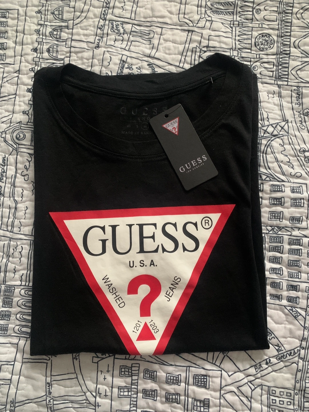 Black Guess t-shirt. Features iconic triangle logo. New with tags.