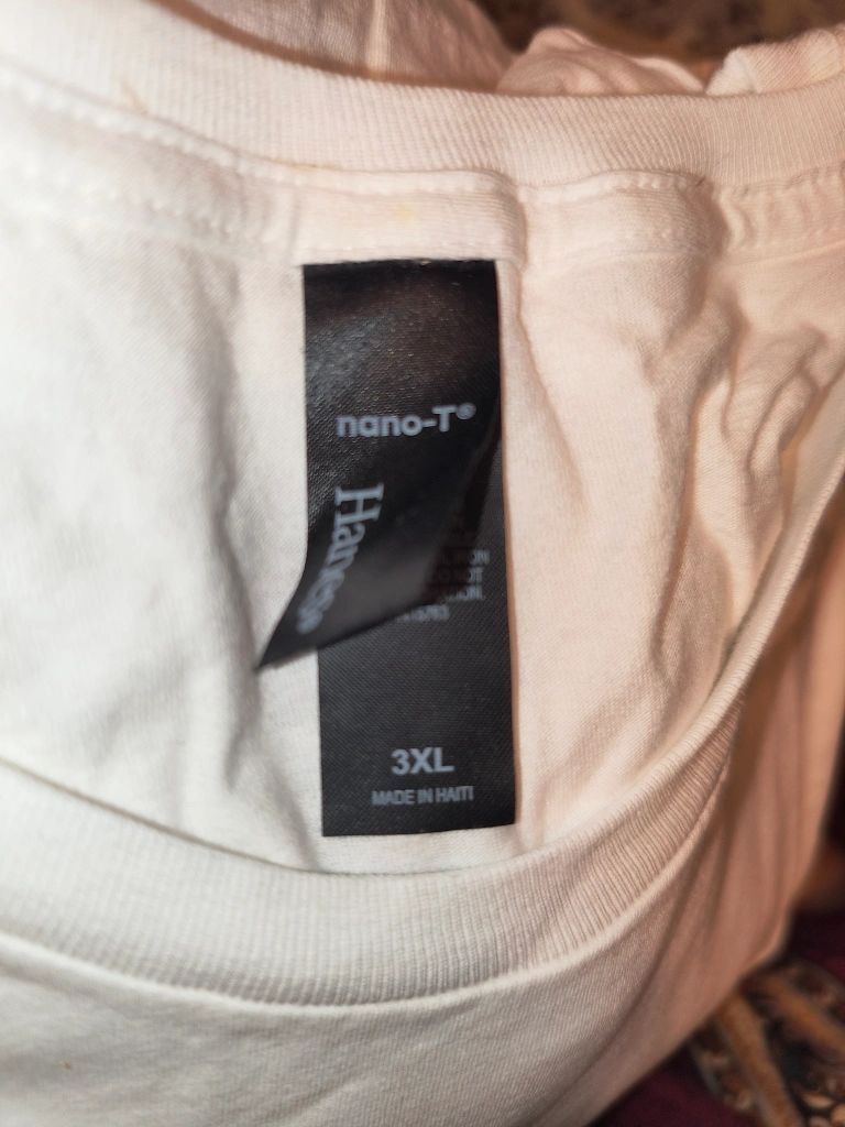 Men's Hanes Nano-T 3XL white t-shirt. Made in Haiti. Great for everyday wear. 2 pieces for $20