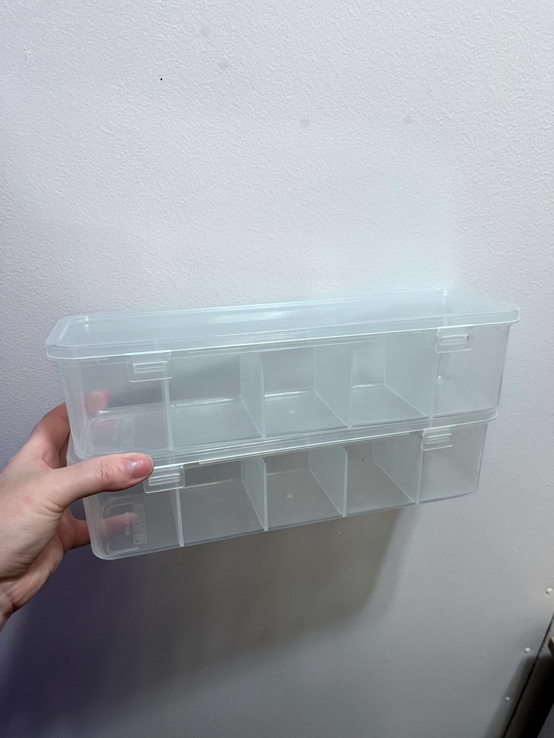 Two clear plastic storage containers with compartments. The containers are 11.5 in long, 2.5 inch deep. Each partition is roughly 2 in wide. Perfect for organizing small items such as tea bags, craft and jewelry items, small toys, and more! LOCATION: This item is for pickup at my home near King St West and Jameson Avenue in Parkdale (exact address is only given for confirmed pickups).