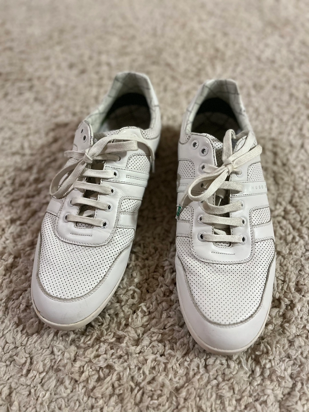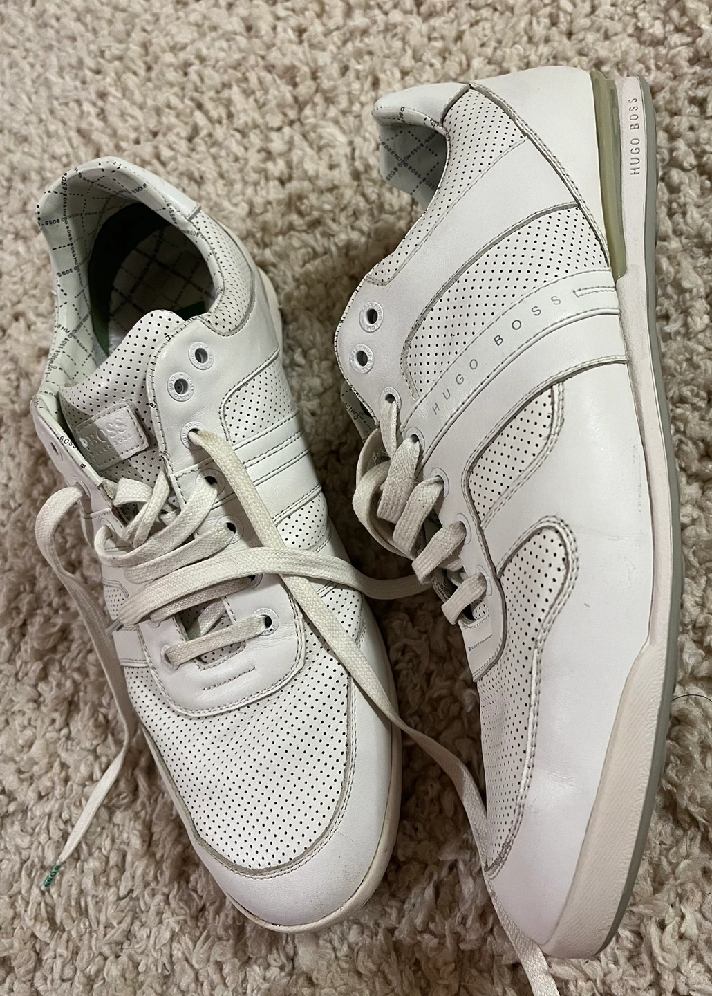 Hugo Boss White Leather Running Shoes Men Size 11.5-12 EU 45 Great Condition Pick Up Bloor and Islington Etobicoke