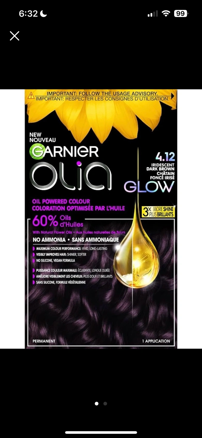 Ganier olia hair dye 5.12 iridescent, medium brown No ammonia oil powered colour 3x shine Brand new