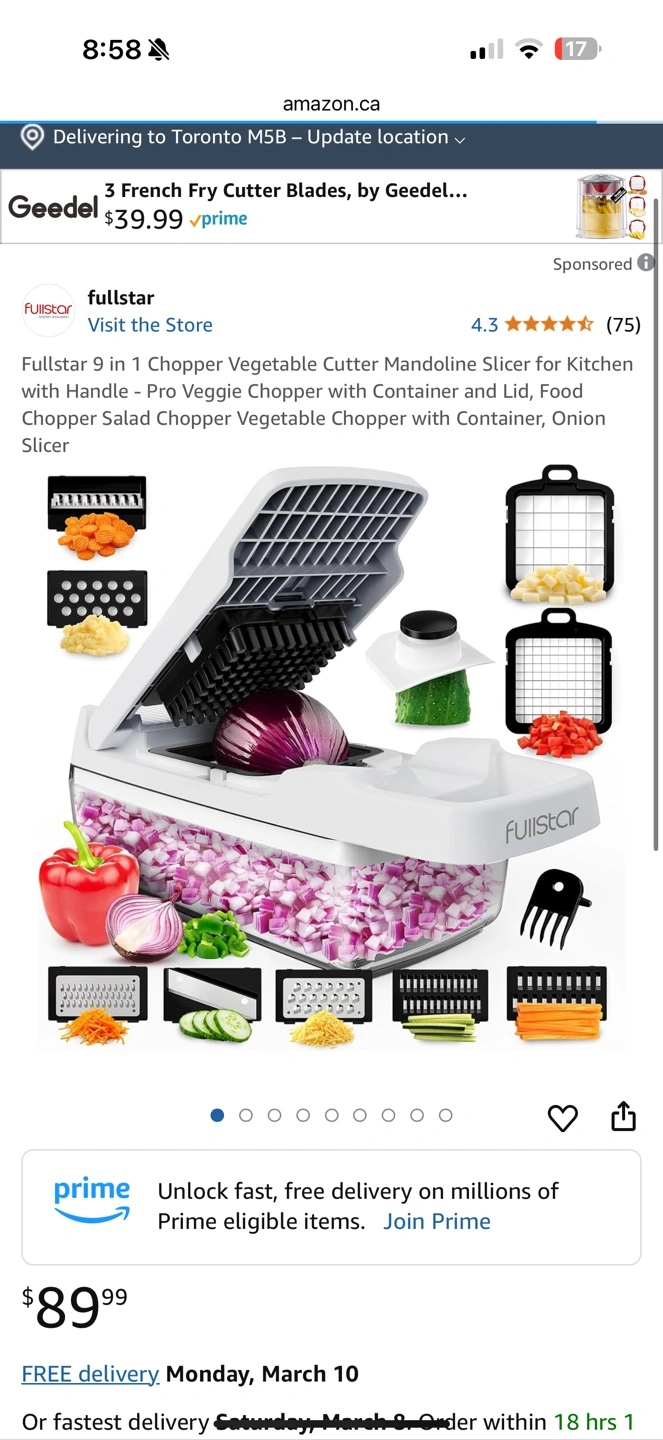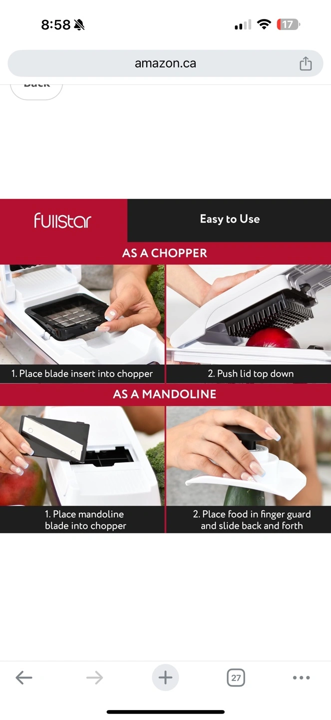 Multi-functional kitchen tool. Includes various blades for chopping, slicing, dicing, grating, and more. Sturdy handle, large capacity container. Easy to clean and store. Amazon price is 89 plus tax My price is 30$