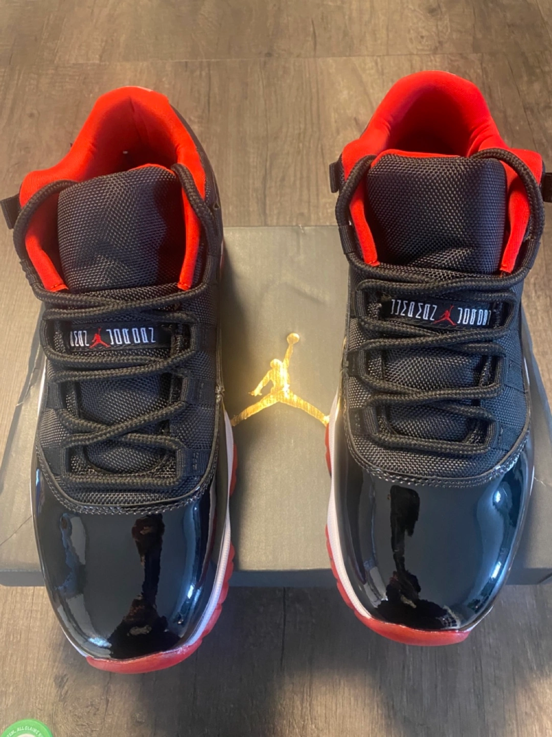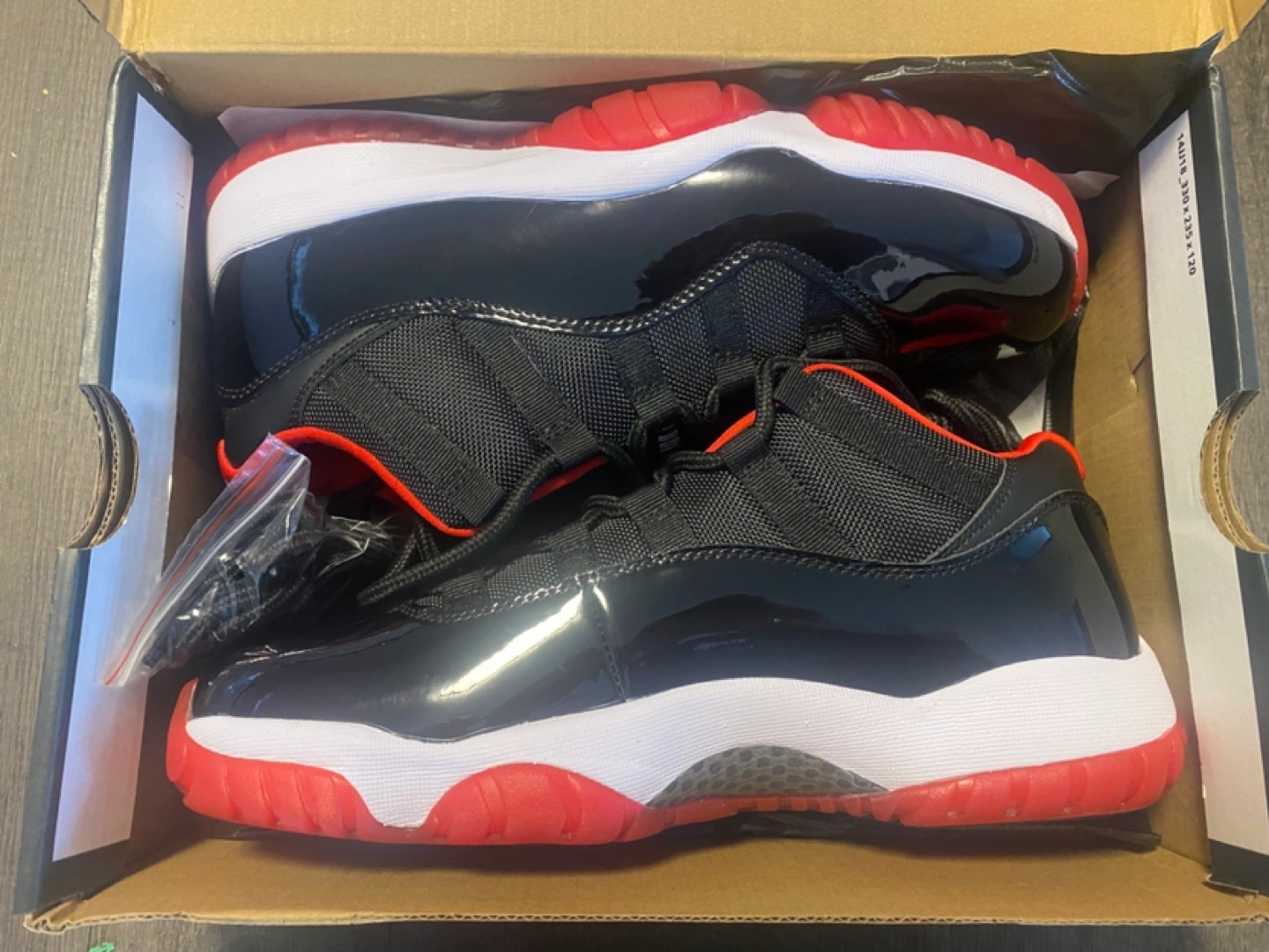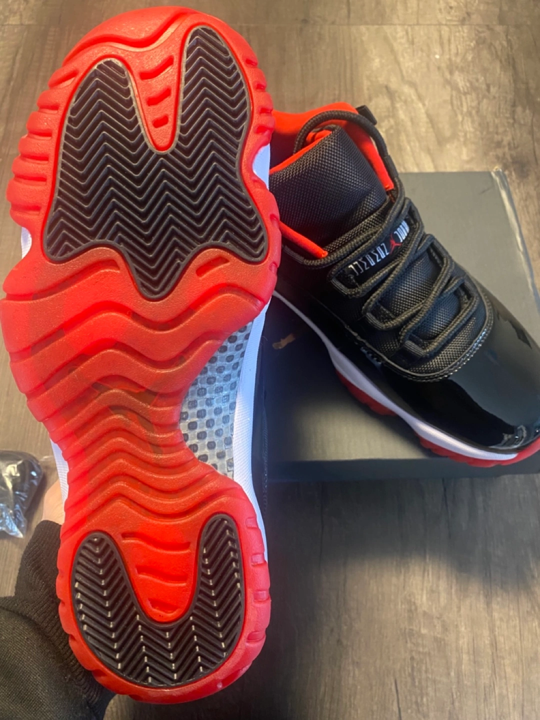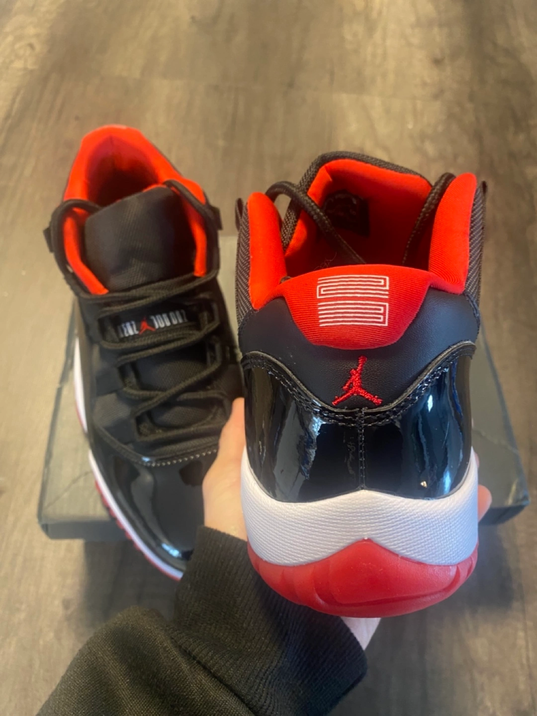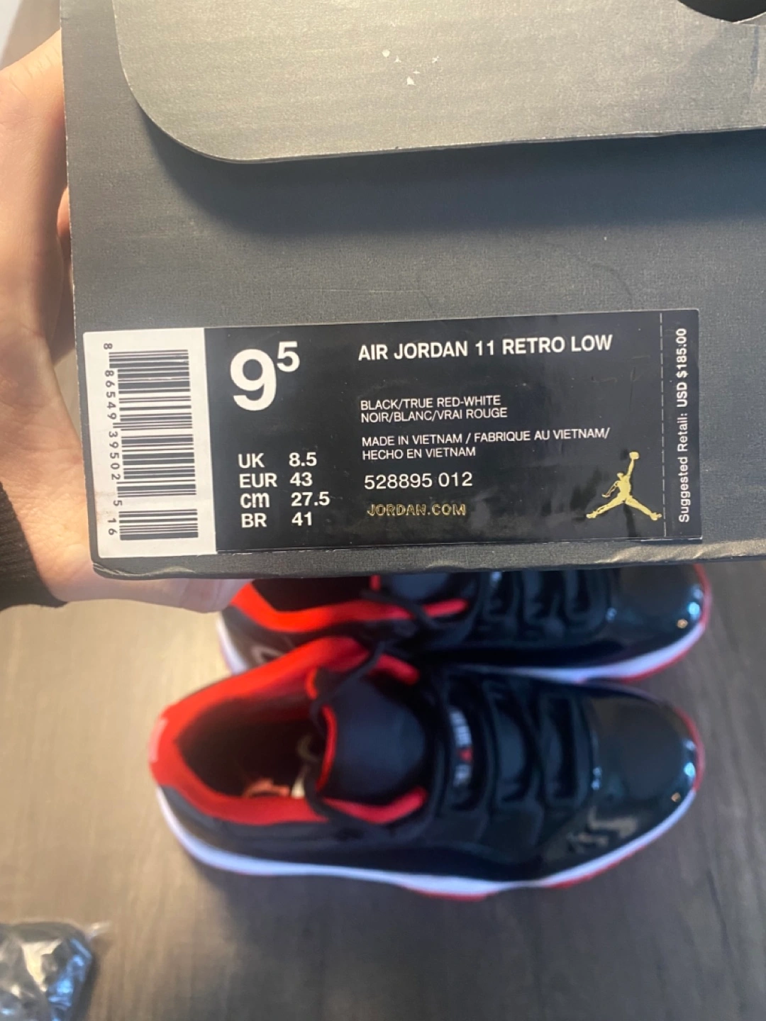 Air Jordan 11 Retro Low IE sneakers. Black and red colourway. Size 9.5 US men's. Patent leather upper. In original box. Send cash offers. Pick up: 795 Ottawa street south Kitchener Ontario π Shipping is available. Message me for details!βοΈ
