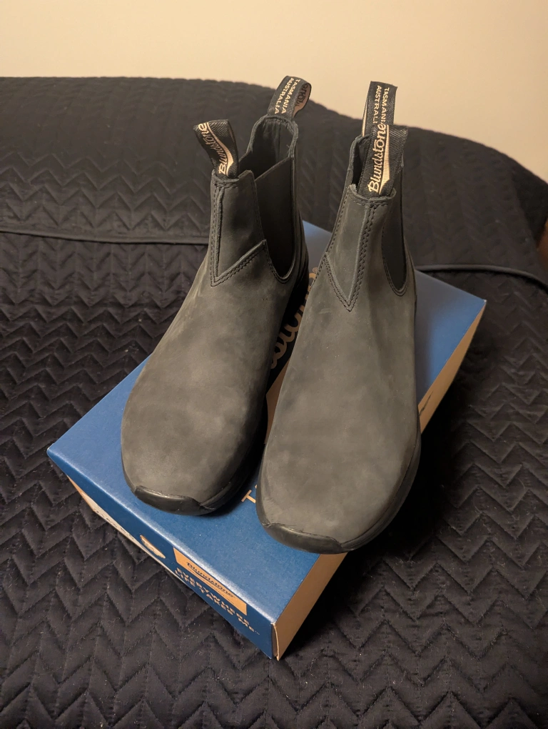 New pair of men's Blundstone boots in a medium Grey colour, never been worn, in the box. Size is 8.5 UK or 9.5 US. Only reasonable offers, thanks!