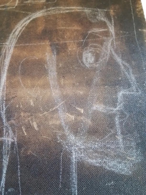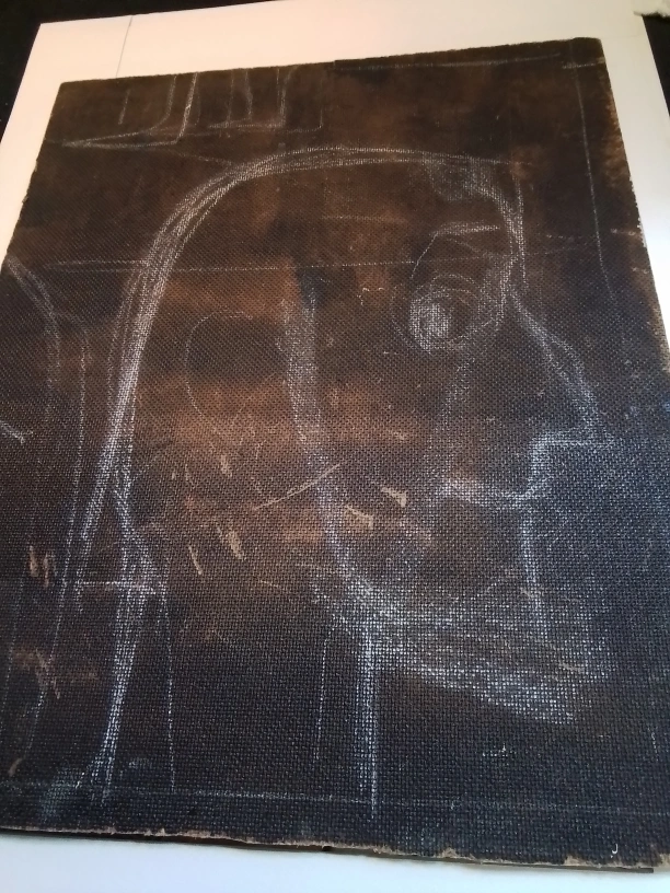 Framed Abstract Painting of a Woman Framed abstract painting. Features a woman's face. Painterly style. Muted colours. Ready to hang. Cool acrylic on board painting of a woman with a figure in the shape of the moon playing a musical instrument. In good condition. Measurements in inches. Measurements: 15x18.5, Frame 18 x 25 Pickup at Young Street and Steels Ave