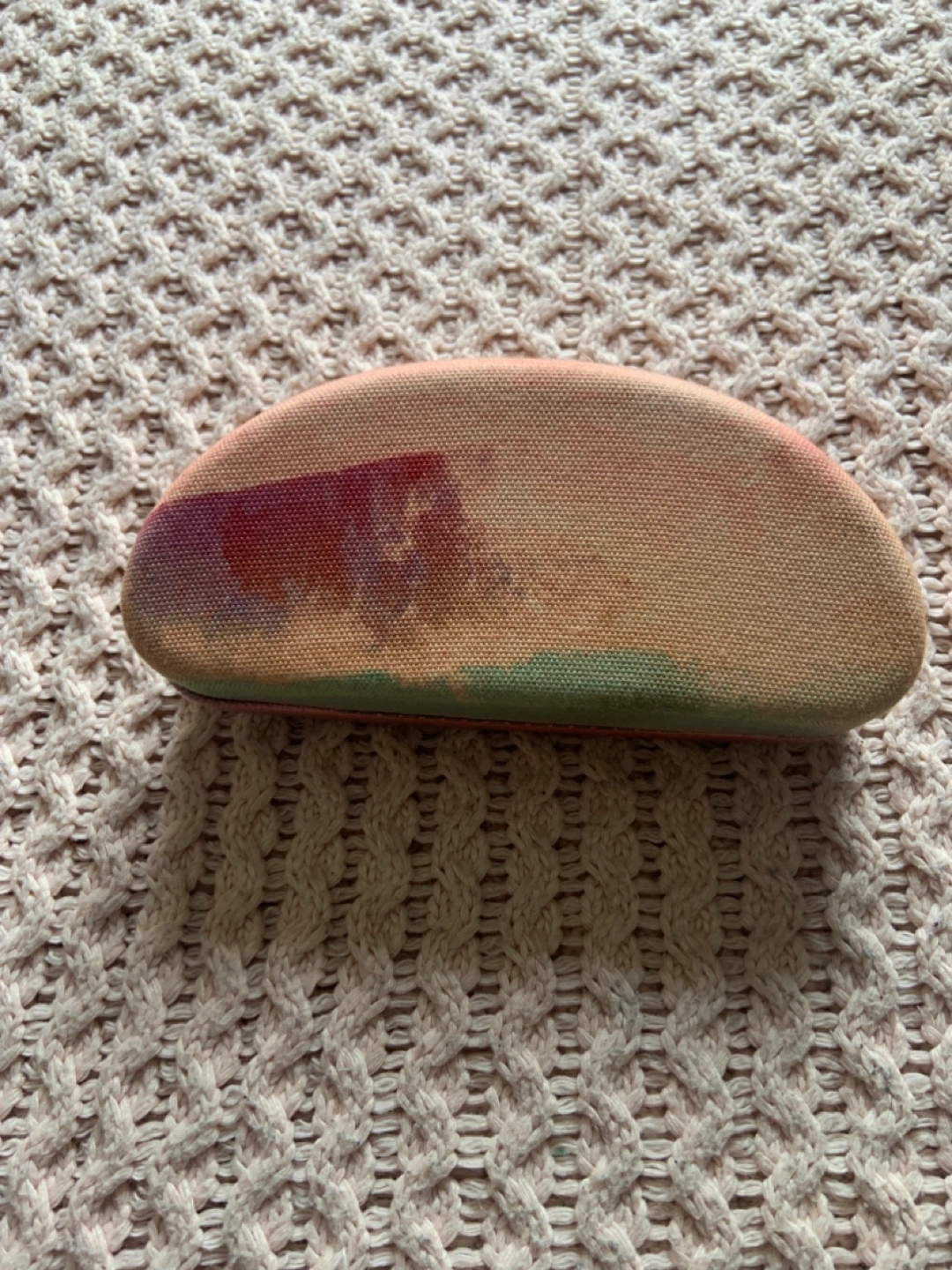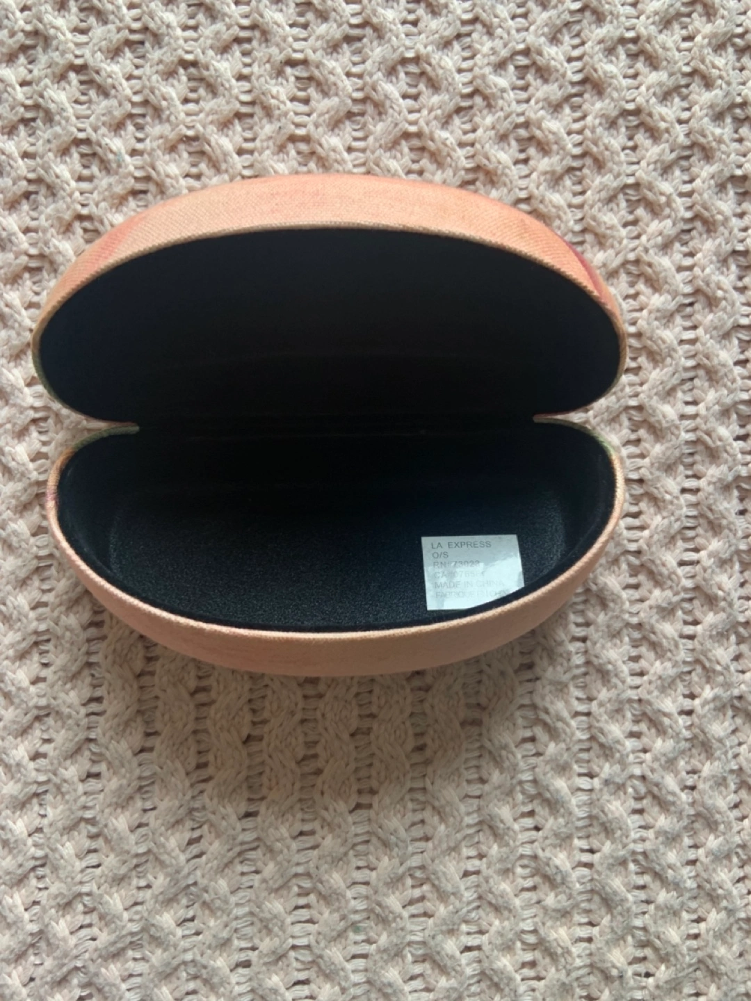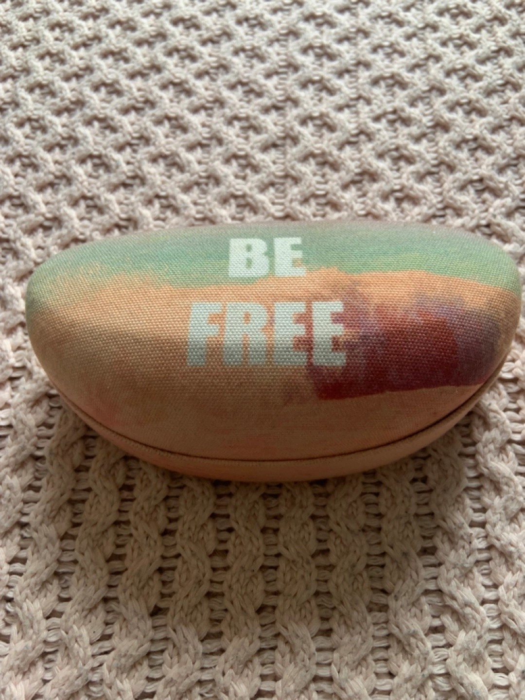 Hard shell eyeglass case. Features a pastel tie-dye pattern and "Be Free" text. Soft interior lining. Pre-owned, minor staining. • NEW • LA EXPRESS • HARDSHELL SUNGLASSES CASE • ‘ NE FREE ‘ • GREAT PROTECTION • GREAT FOR THE HOLIDAYS • $10 • MAIN INTERSECTION ARE HURONTARIO•STEELES JUST BEFORE DOWNTOWN BRAMPTON !