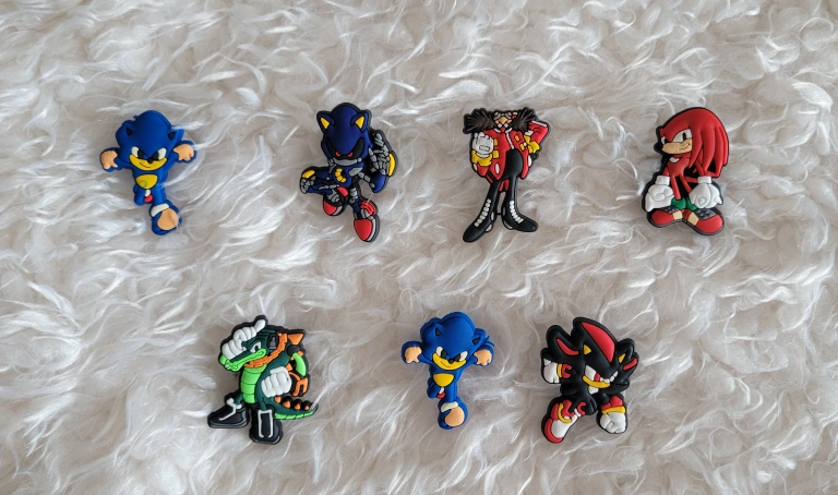 Collection of 42 Sonic the Hedgehog themed Jibbitz charms. Features various characters including Sonic, Tails, Knuckles, Amy, Shadow, and more. Perfect for Crocs or other footwear. Multiple designs available. All now for $18. or you can buy individually at $1 each Check out my other listings and bundle to save. ๐๐ป๐ธ Cash and pickup only on Brimley and Eglinton Rd E. in Scarborough.
