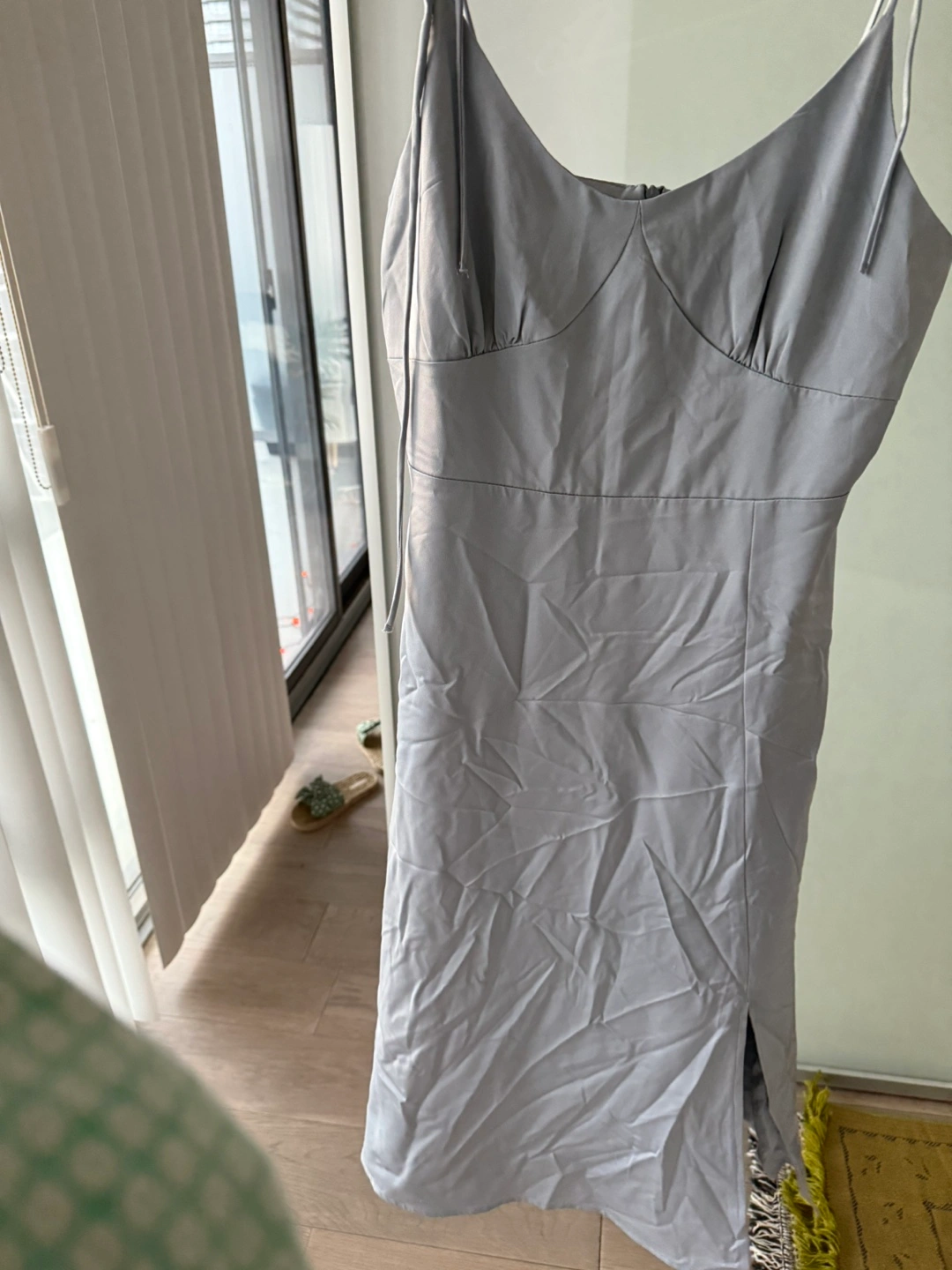Beautiful dusty blue midi slip dress. Adjustable straps. Side slit. Lightweight fabric. Perfect for spring or summer.
