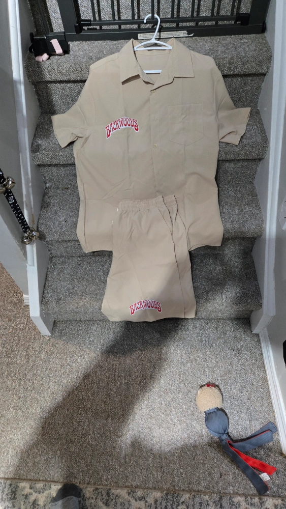 Tan coloured short sleeve button up shirt and matching shorts. Backwoods logo embroidered on both pieces. brand new piece, never worn.