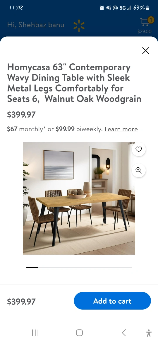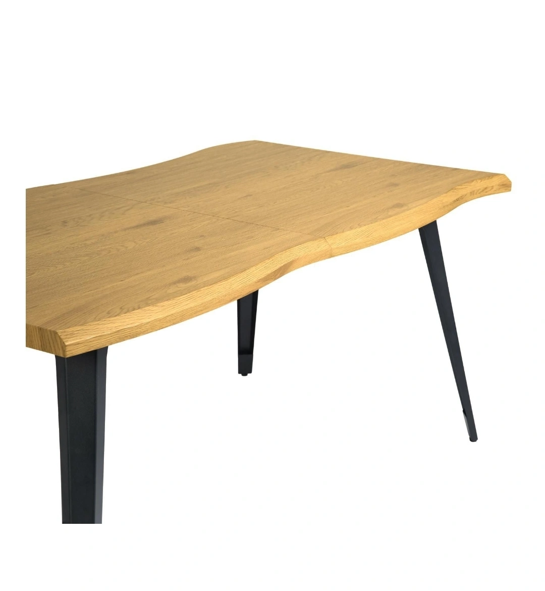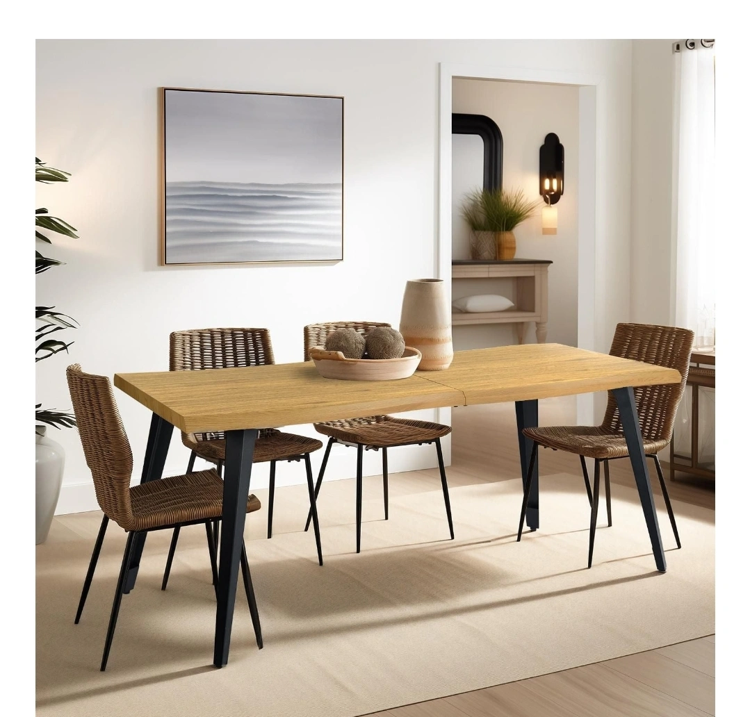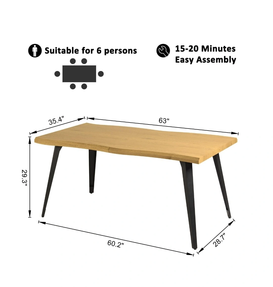 Wavy dining table with sleek metal legs. Comfortably seats six. Walnut oak woodgrain. Easy assembly. 63" long. -Homycasa 63" Contemporary Wavy Dining Table with Sleek Metal Legs Comfortably for Seats 6, Walnut Oak Woodgrain