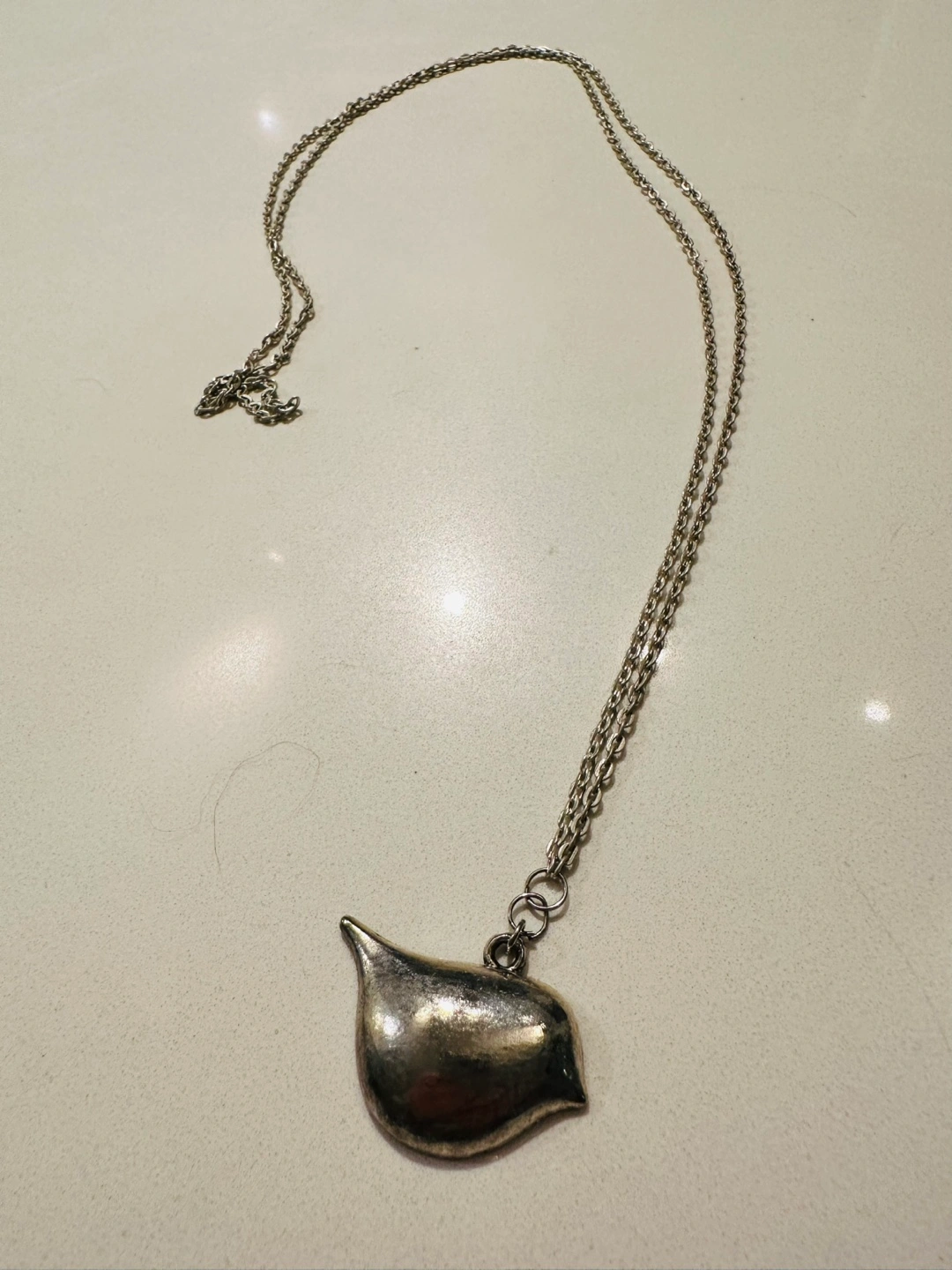 Lovely silver tone bird pendant necklace. Matching glass charm included.