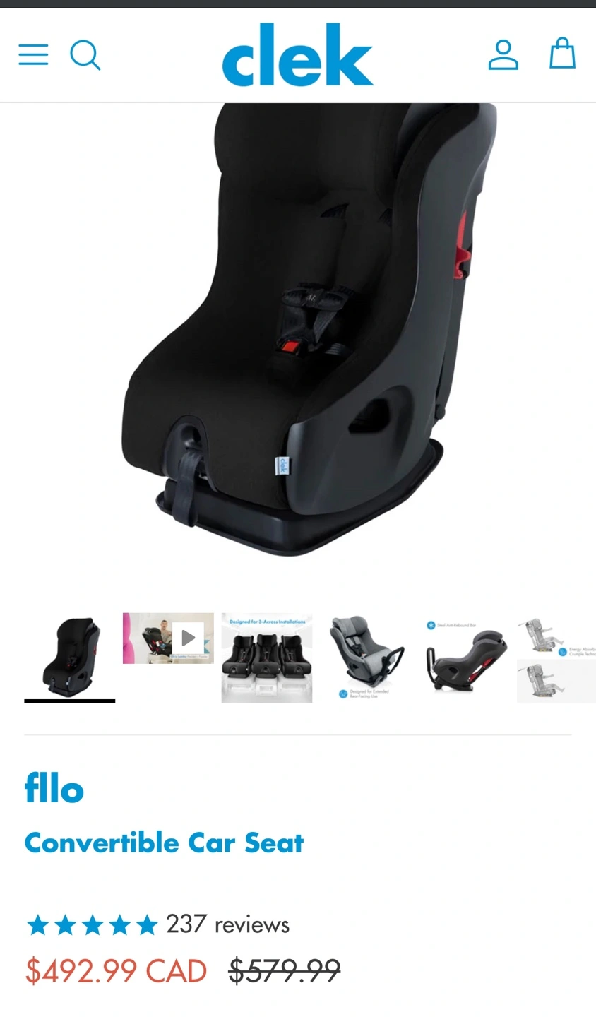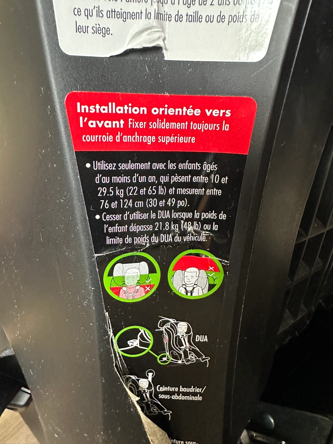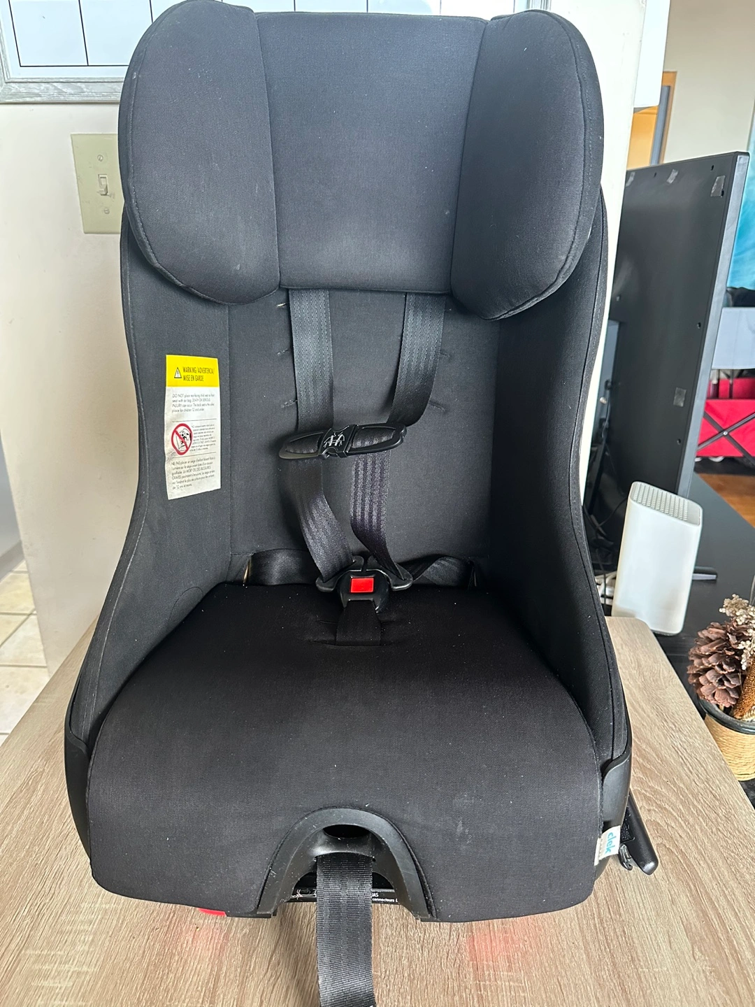 Black Fllo convertible car seat. Good condition. Forward-facing only. Suitable for children aged 1-6 years weighing 10-29.5 kg and measuring 76-124 cm. Stop using when child exceeds 21.8 kg or vehicle's upper weight limit.