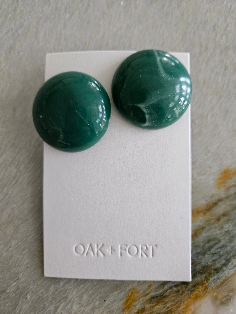 Stylish green button earrings from Oak + Fort. Perfect for any occasion. never worn. will sanitize again beforehand button diameter ~2.5 cm