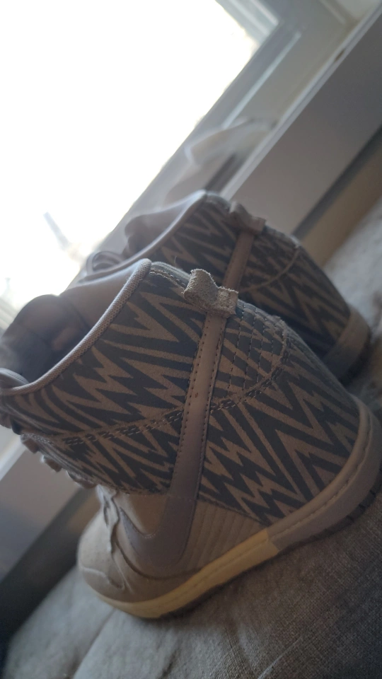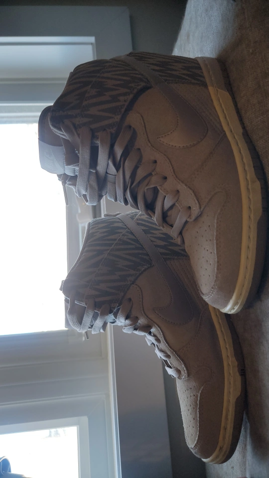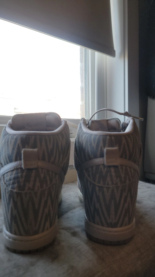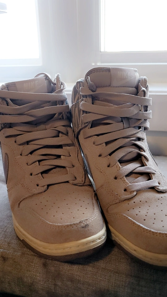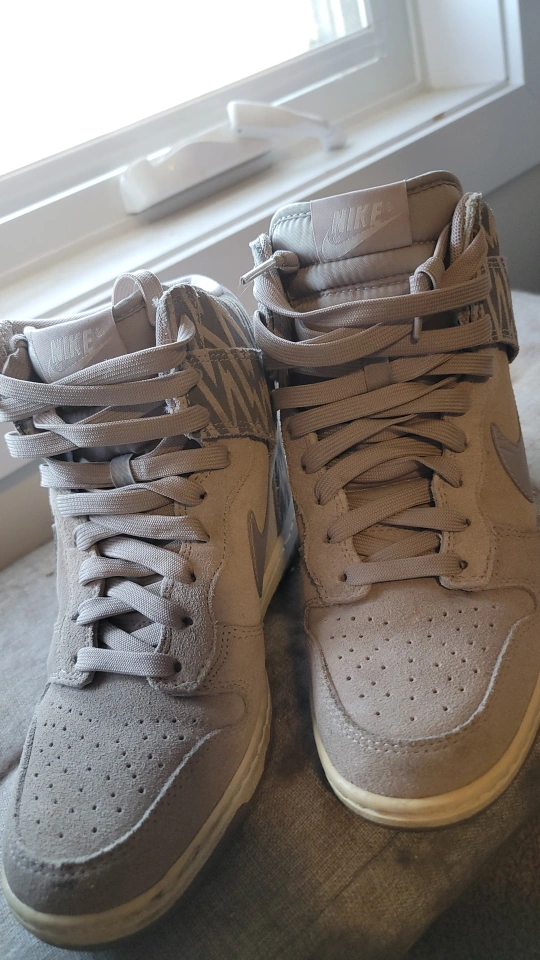 Women's Nike Dunk Sky High wedge sneakers. Light taupe colour. Zigzag pattern on back. Lace-up closure. High-top design. Basically like new. Worn twice.