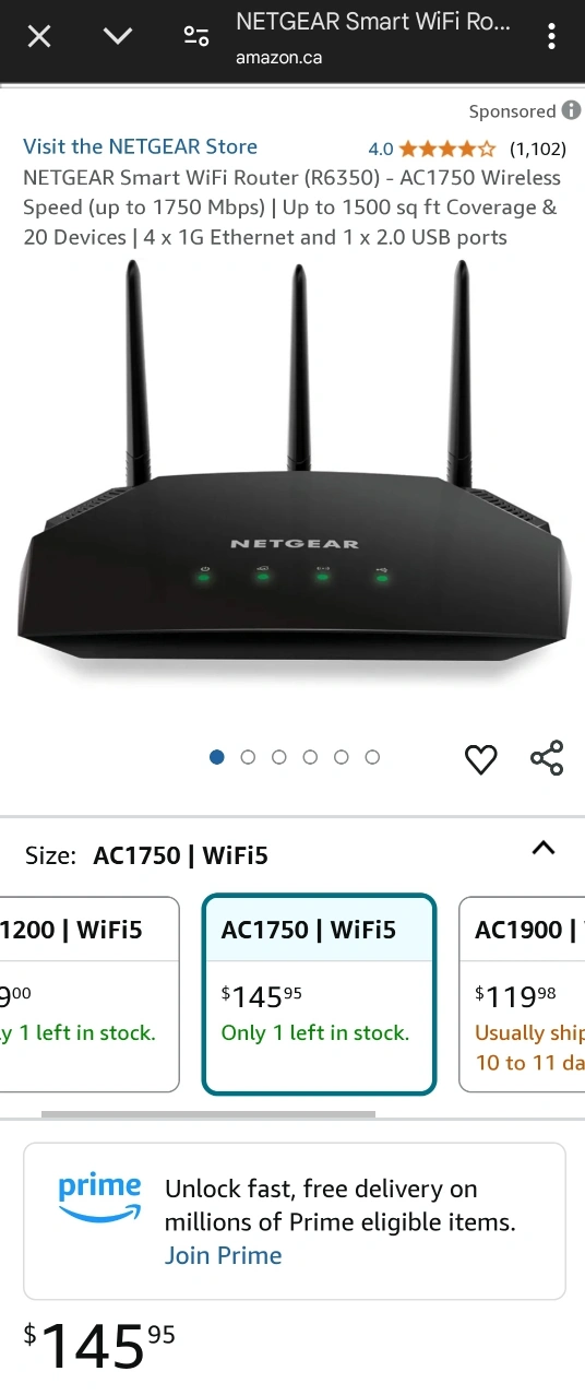 New in sealed box. Dual-band Gigabit router. Up to 1200 sq ft wireless coverage. Up to 1750 Mbps speed. Connects up to 20 devices. 4 x 1 Gigabit Ethernet ports and 1 x 2.0 USB port. Advanced QoS and parental controls. Includes WPS. great for homes up to 2000 sqft. multilevel. can also work as range extender plug and play great no matter what internet provider you have, rogers, telus, lightspeed... $150 At Amazon