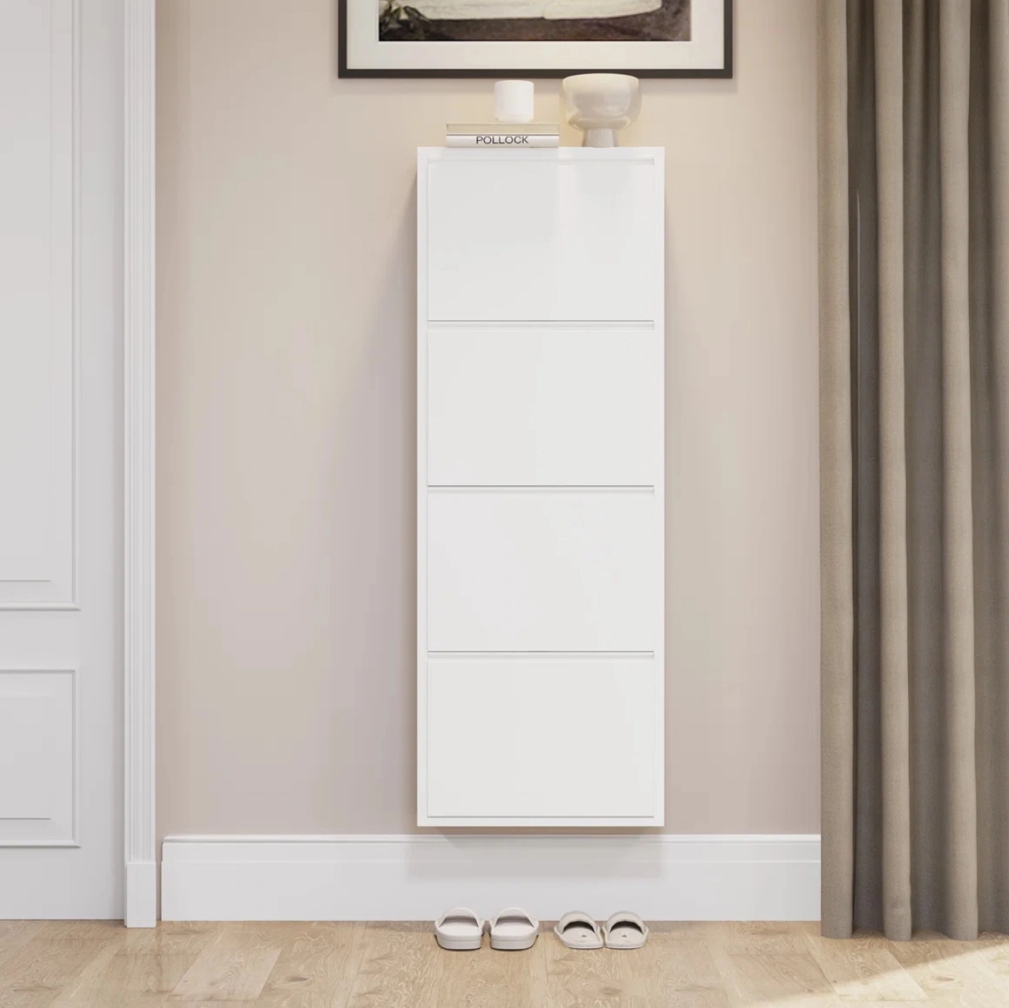Brand new 4 Tier Flip Down Shoe Storage Cabinet Dent on side as seen on photo Retails for $205 Selling for $100 Product information: https://www.wayfair.ca/storage-organization/pdp/wade-logan-4-tier-flip-down-shoe-storage-cabinet-c009773306.html