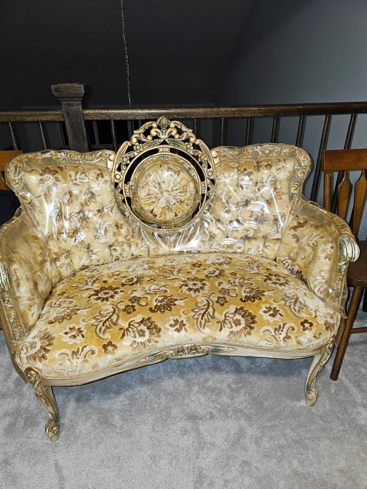 One ANTIQUE GOLD LOVESEAT in excellent condition still plastic on it CALL 289-668-6382 All offers looked at Asking $400