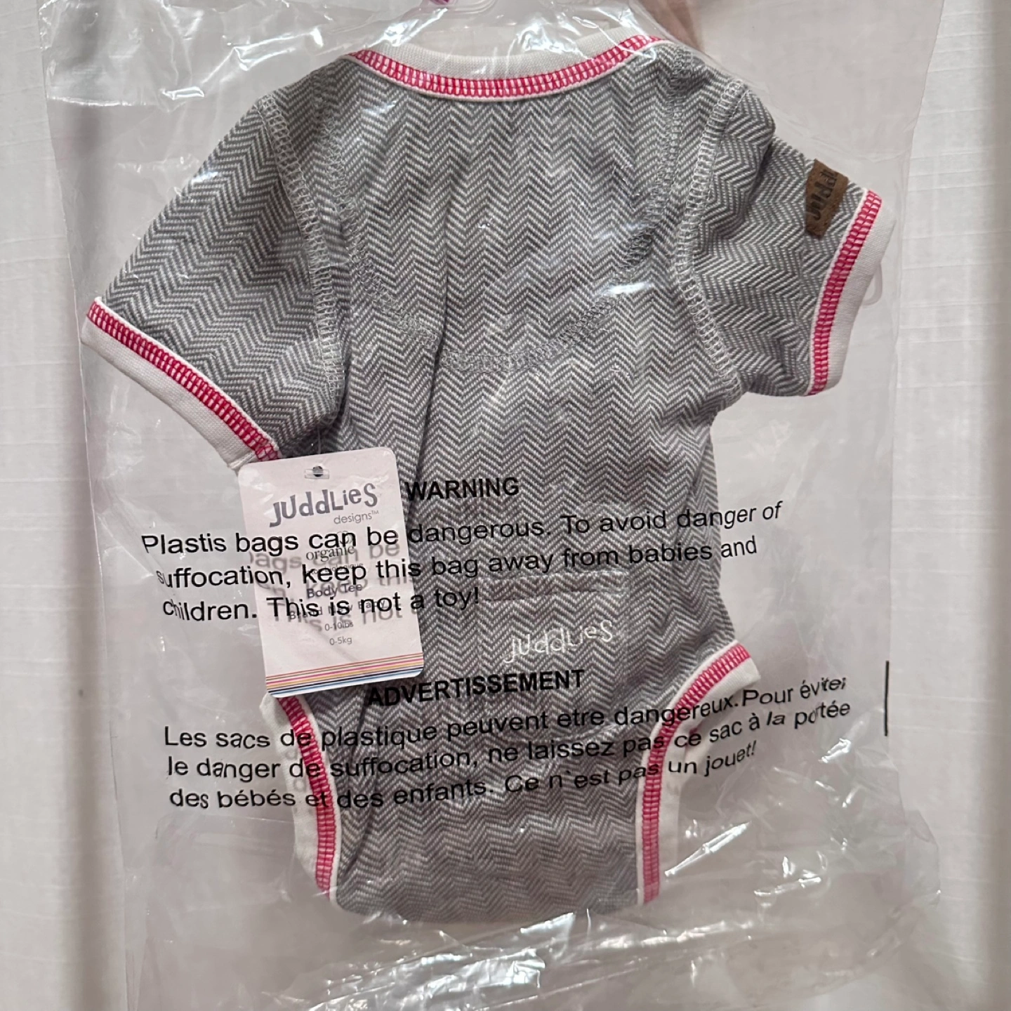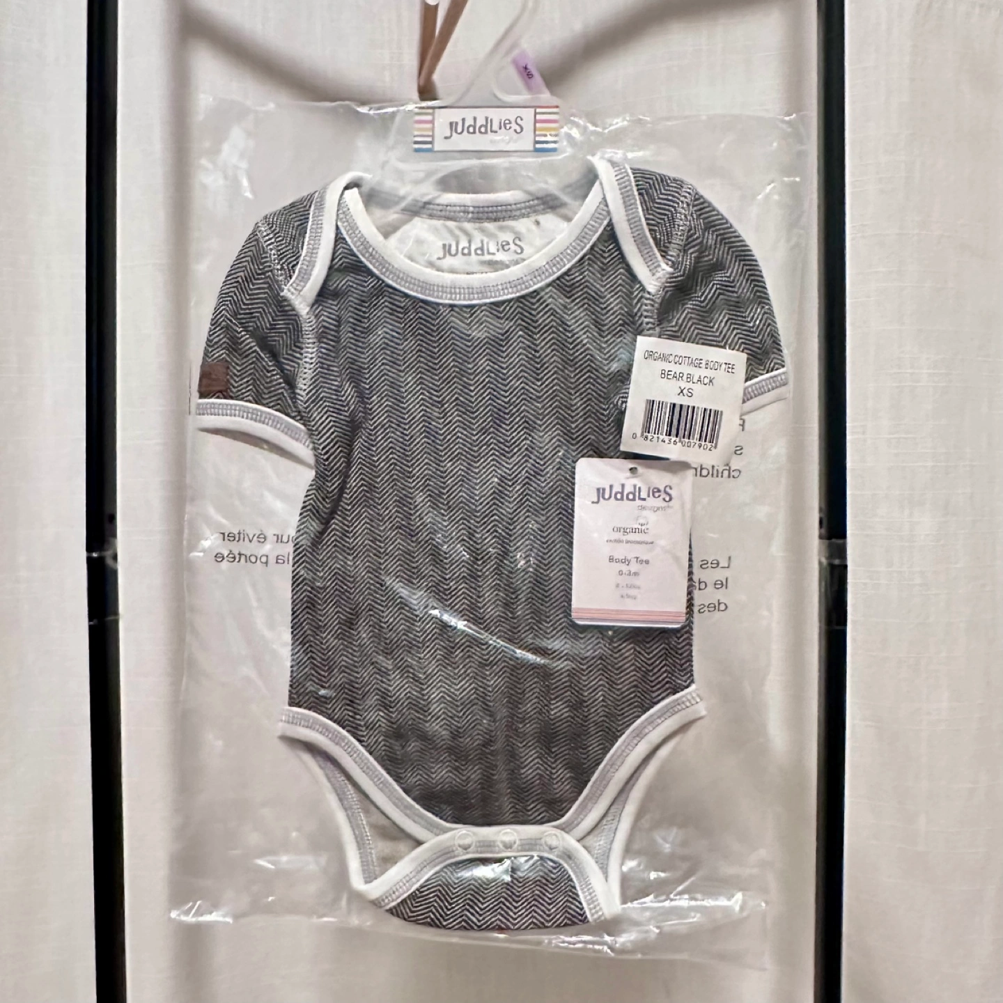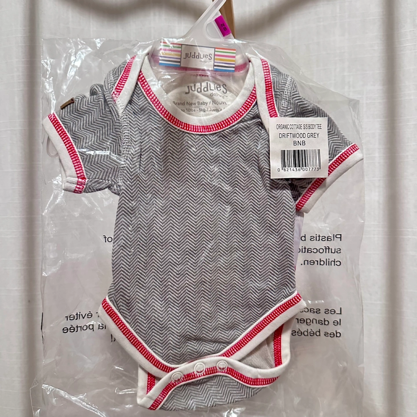 $10/each OBO New with tags. Adorable baby bodysuit. Organic cotton. Herringbone pattern. Choose from 3 colours: 1. Driftwood Grey with Red Trim 2. Bear Black 3. Lake Blue with Red Trim Available sizes: 1. Newborn 2. X-Small (0-3 months) Cash ONLY, must be picked up by Lansdowne Avenue & Dundas Street West. Pet Free and Smoke Free Home. PLEASE CONFIRM WHICH COLOUR(S) and SIZE.