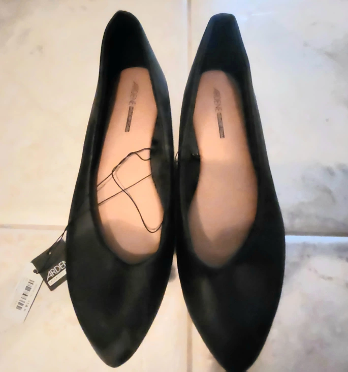 Pair of black women's flats. Pointed-toe design. Soft material. New with tags.