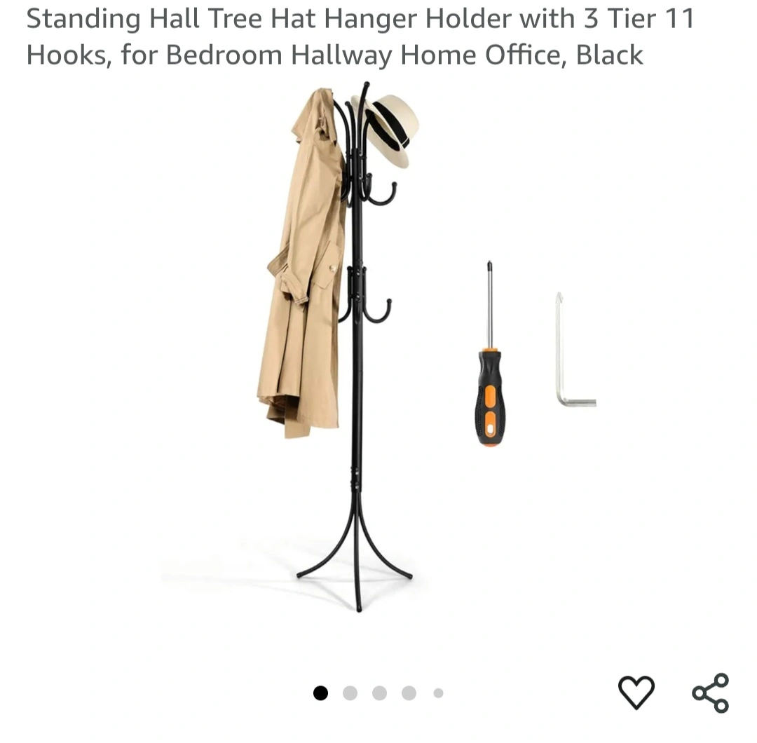 Sanding coat rack. Eleven hooks for coats, hats, etc. Sturdy, sleek design. Easy assembly. Perfect for bedroom, hallway, or office. This was used for a month before buying a bigger one, hence would like to give away It's packed in a carton box which is why no real pictures posted, it will be easy to pick up.