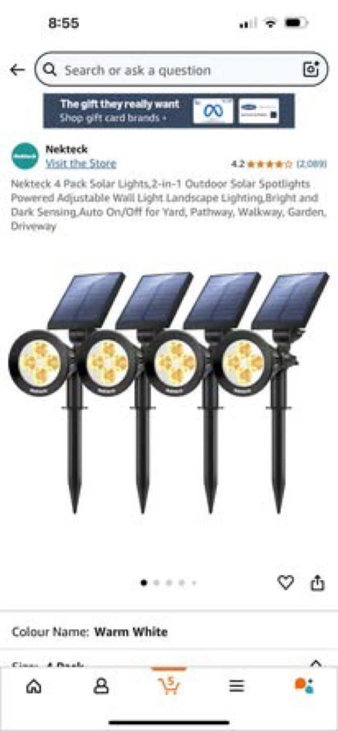 Four-pack solar spotlights. Warm white light. Outdoor landscape lighting. Stake lights for yard, pathway, garden, or driveway. Auto on/off. Smoke free pet free Pick up only. Closed to Fairview mall in Kitchener Only serious inquiries Cash only low ballers will be ignored